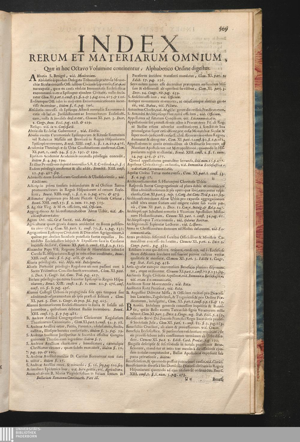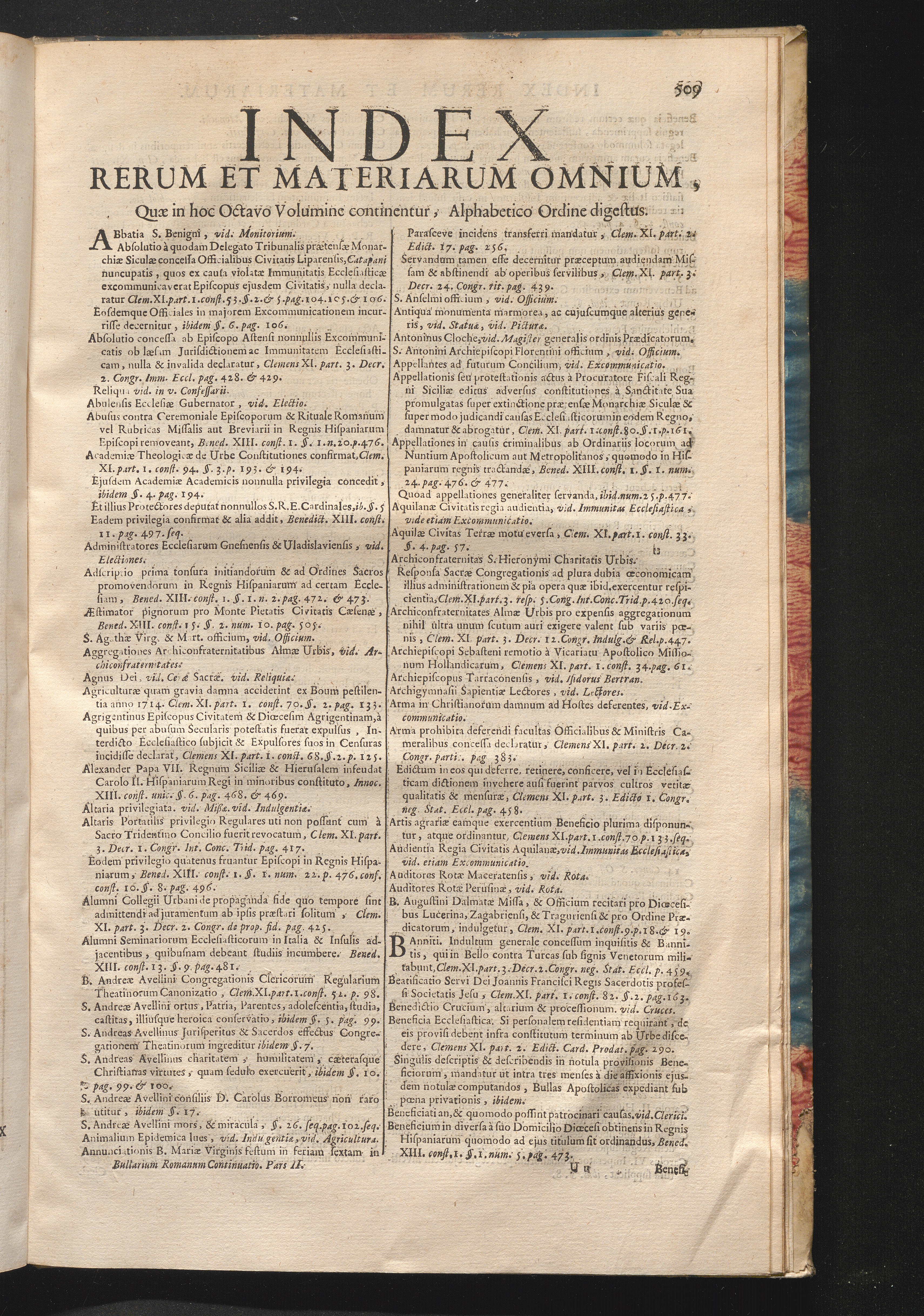 Index Rerum Et Materiarum Omnium, Quӕ in hoc Octavo Volumine continentur, Alphabetico[...]