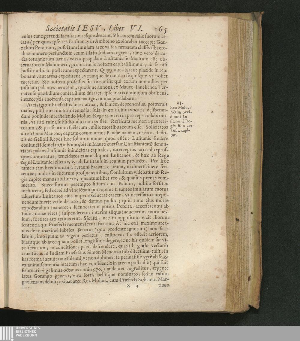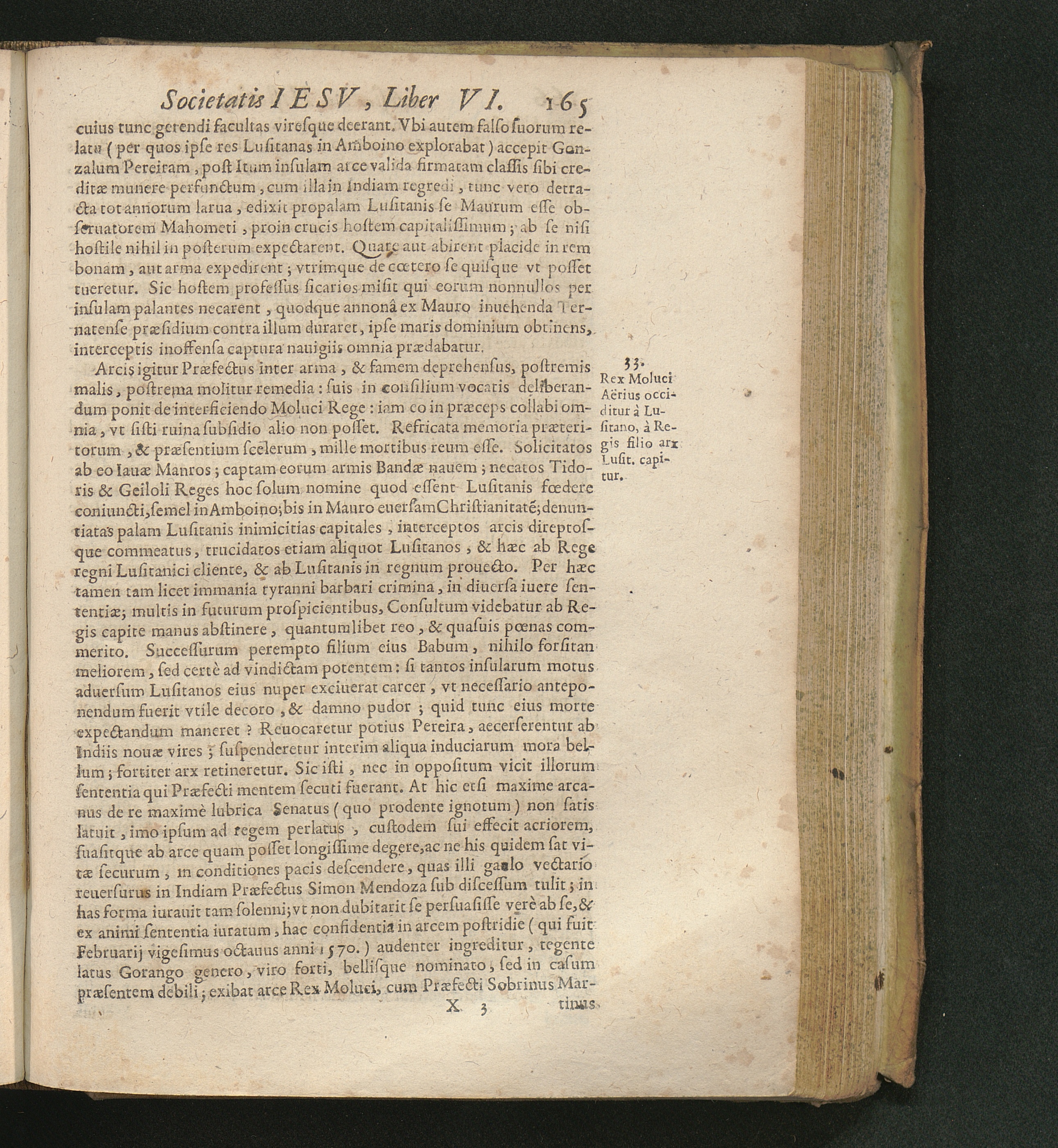 33. Rex Moluci Aërius occiditur à Lusitano, à Regis filio arx Lusit. capitur.