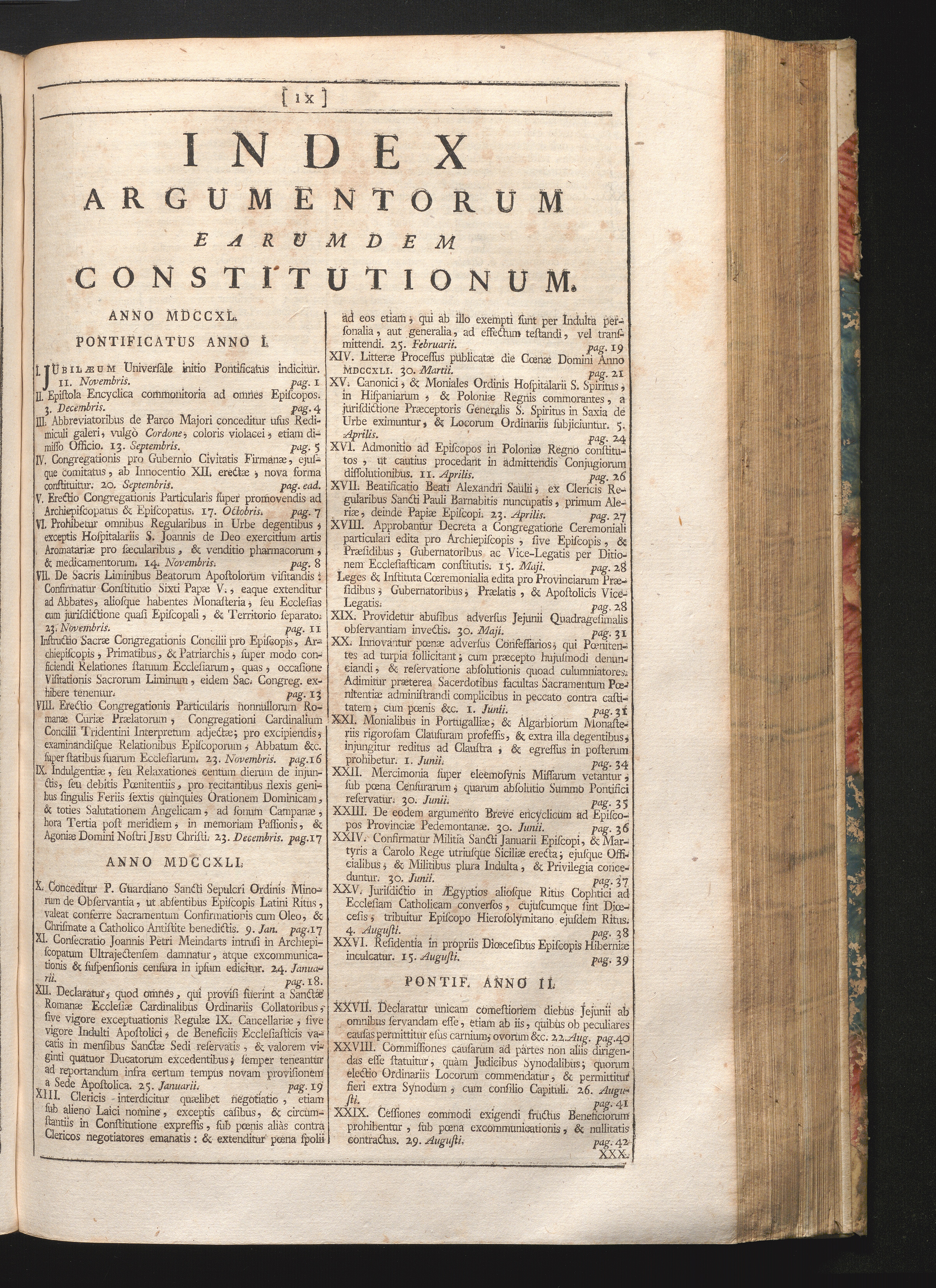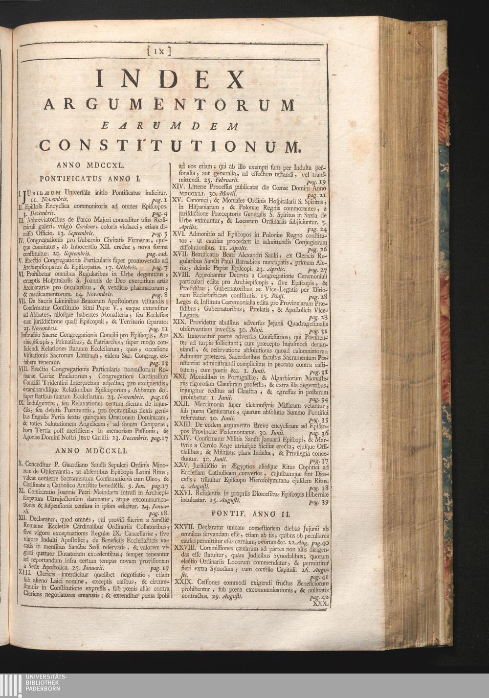 Index Argumentorum Earumdem Constitutionum.