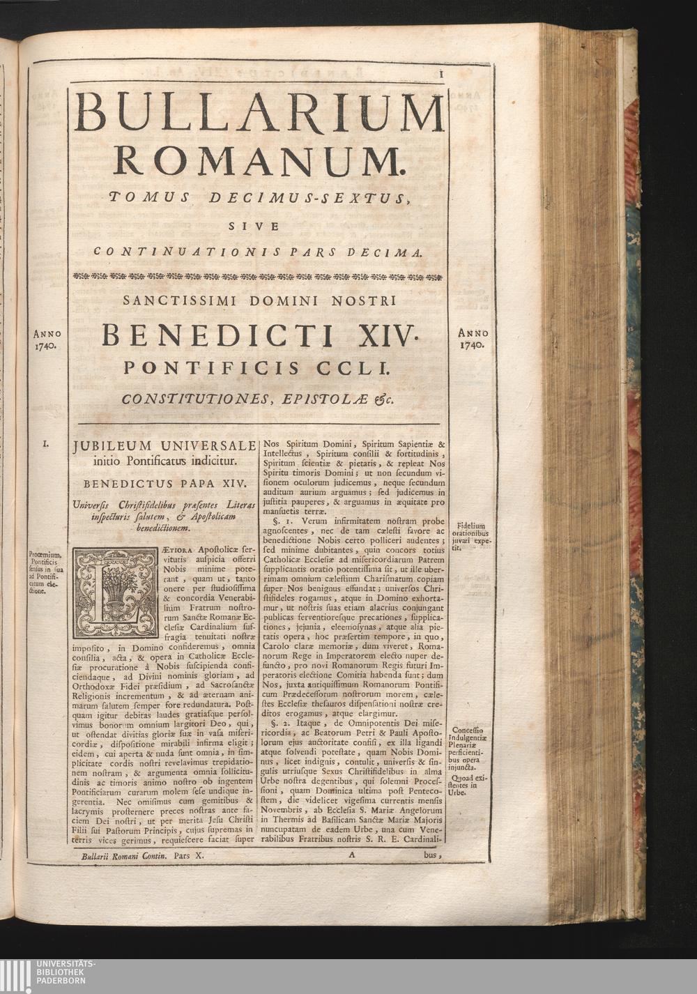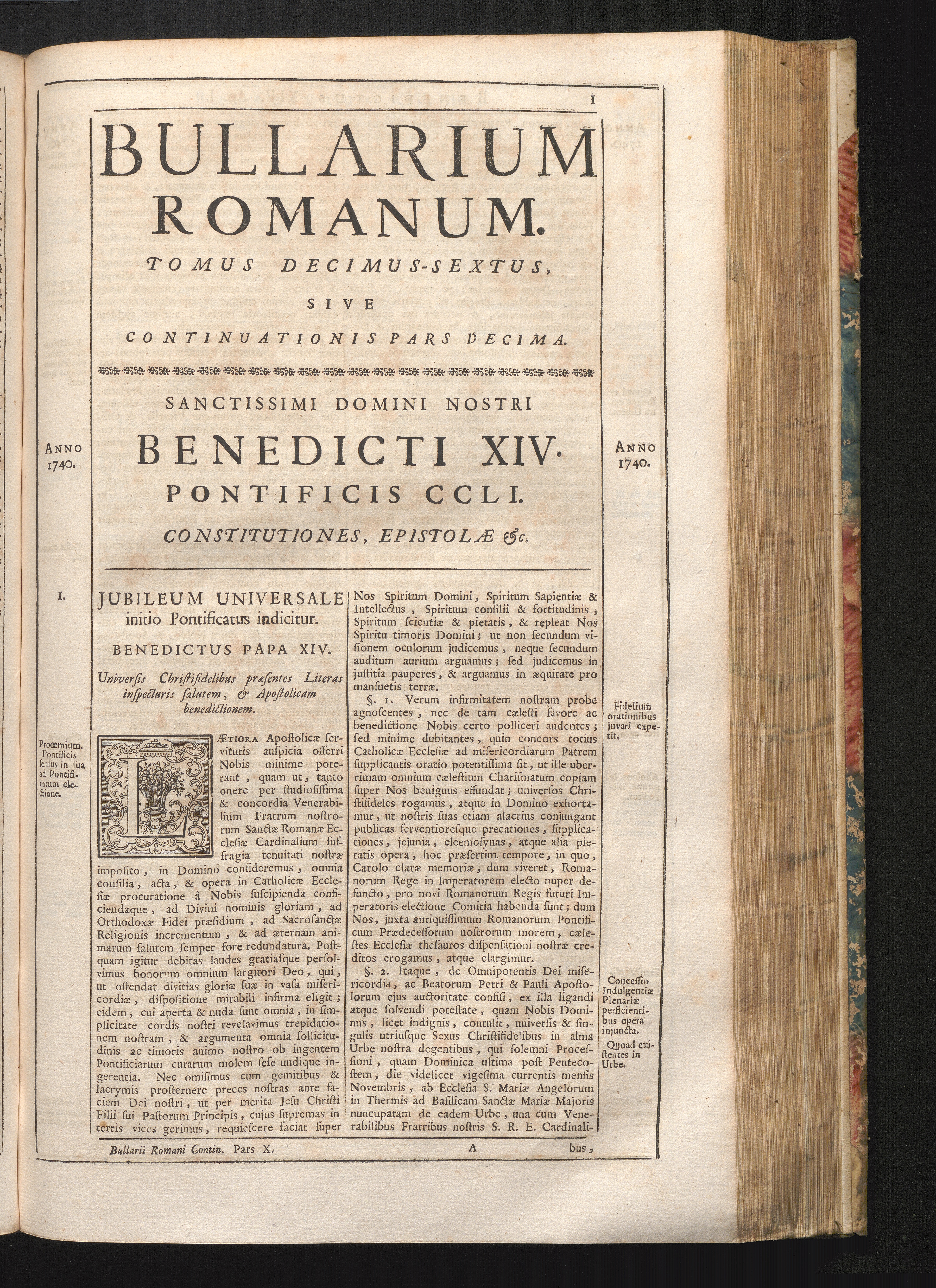 Tomus Decimus-Sextus = Continuationis Pars Decima (1752) Complectens Constitutiones Benedicti XIV. ab initio Pontificatus usque ad Annum 1746