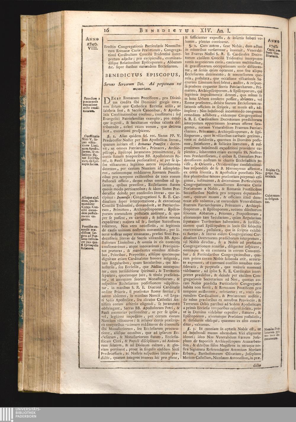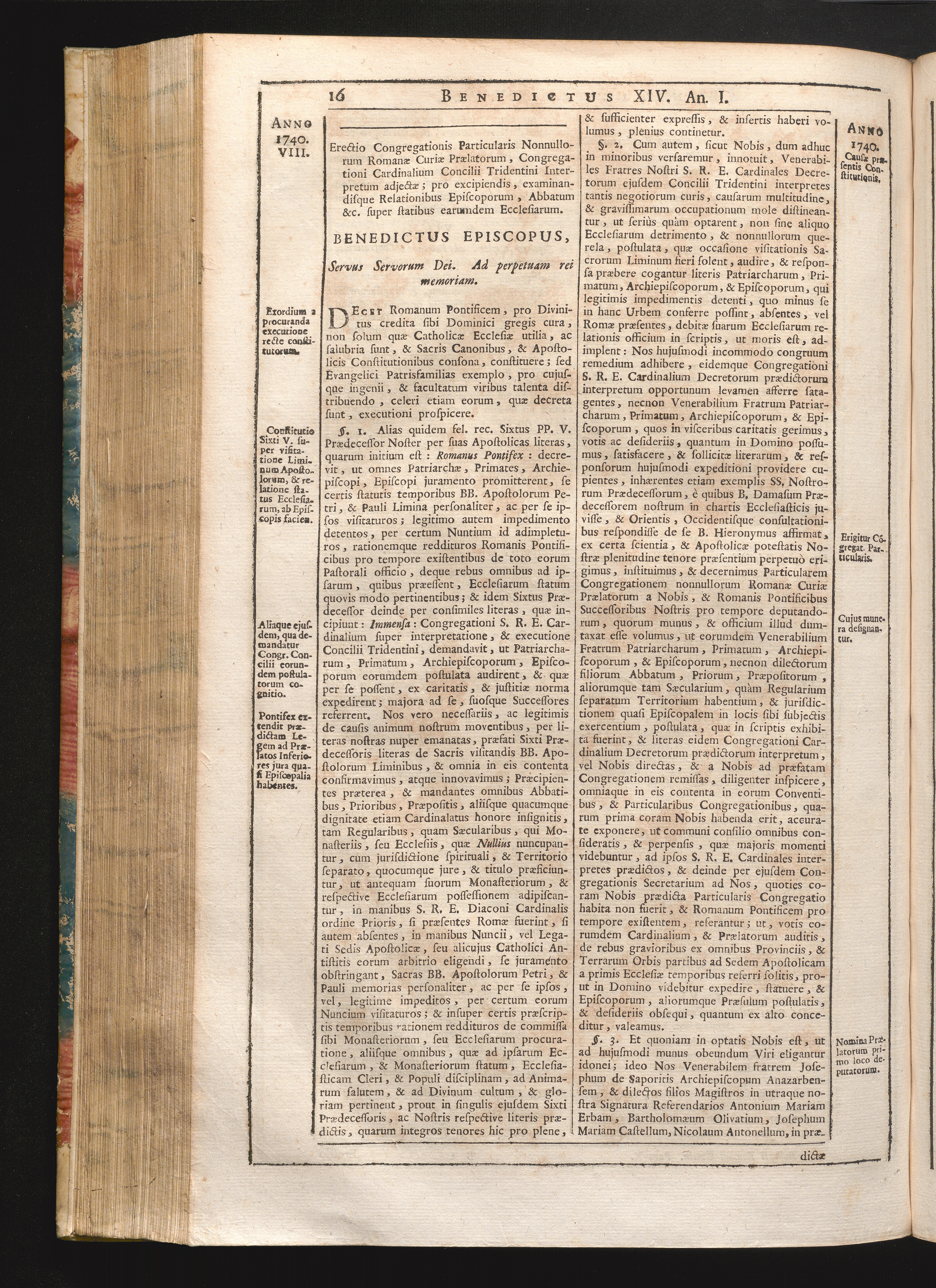 Tomus Decimus-Sextus = Continuationis Pars Decima (1752) Complectens Constitutiones Benedicti XIV. ab initio Pontificatus usque ad Annum 1746