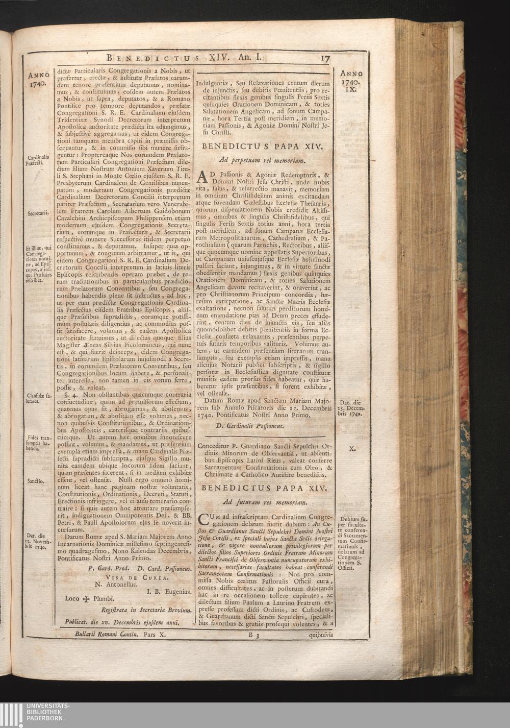 Tomus Decimus-Sextus = Continuationis Pars Decima (1752) Complectens Constitutiones Benedicti XIV. ab initio Pontificatus usque ad Annum 1746