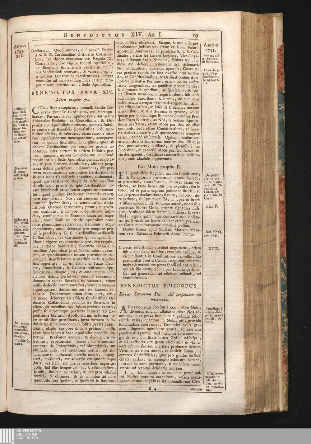Tomus Decimus-Sextus = Continuationis Pars Decima (1752) Complectens Constitutiones Benedicti XIV. ab initio Pontificatus usque ad Annum 1746