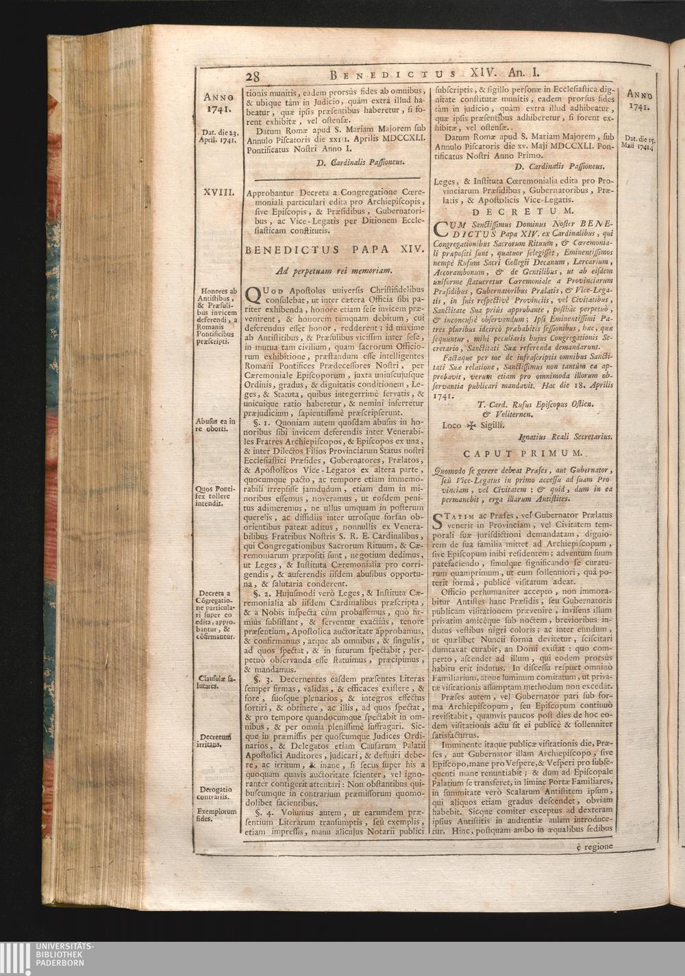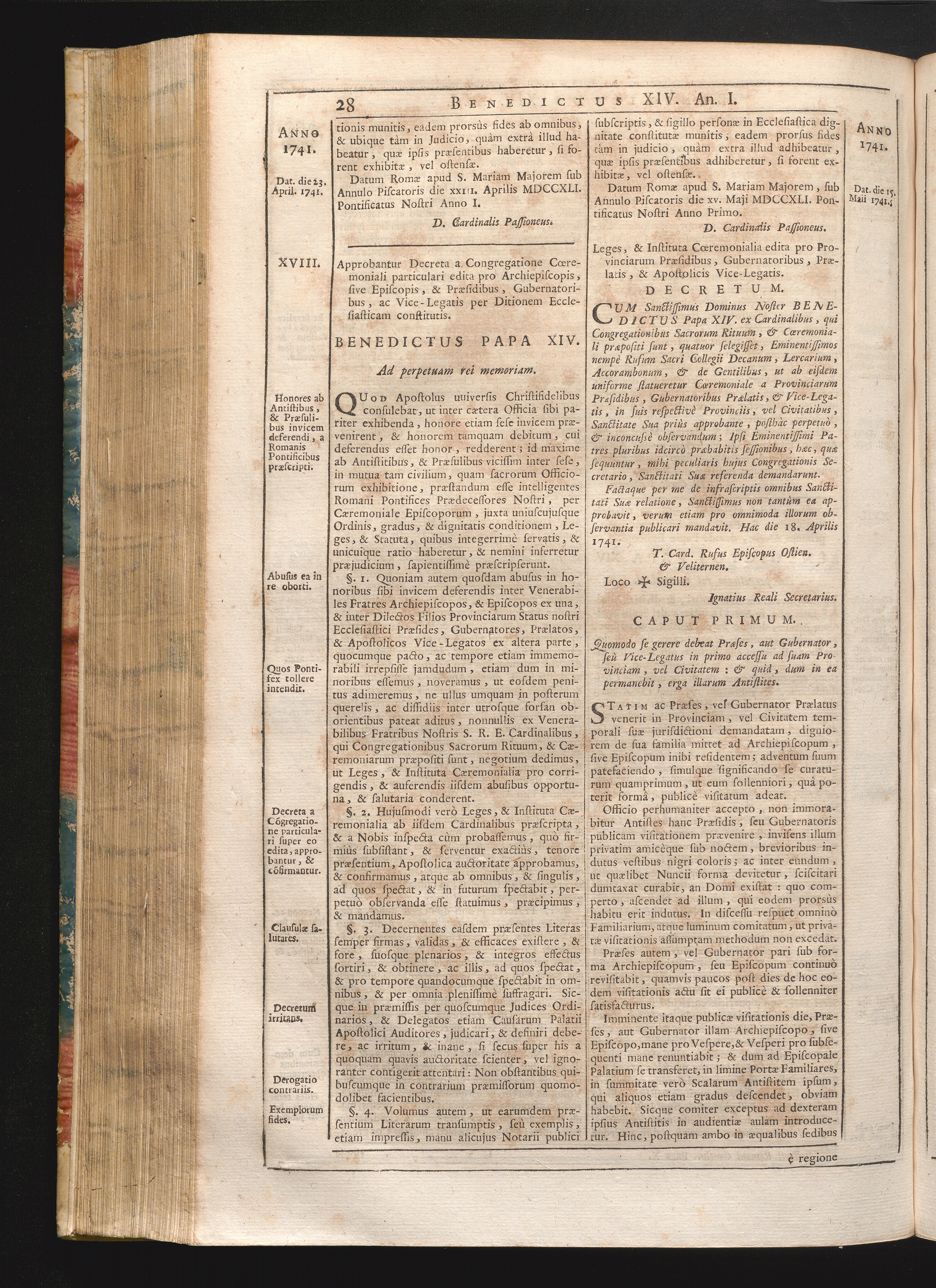 XVIII. Approbatur Decreta a Congregatione Ceremoniali particulari edita pro Archiepiscopis,[...]