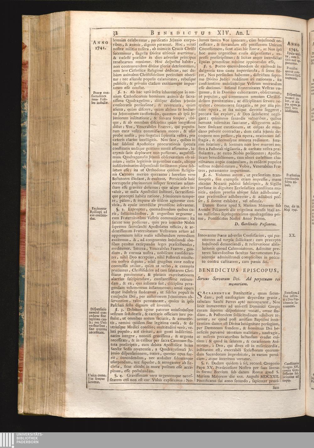 Tomus Decimus-Sextus = Continuationis Pars Decima (1752) Complectens Constitutiones Benedicti XIV. ab initio Pontificatus usque ad Annum 1746