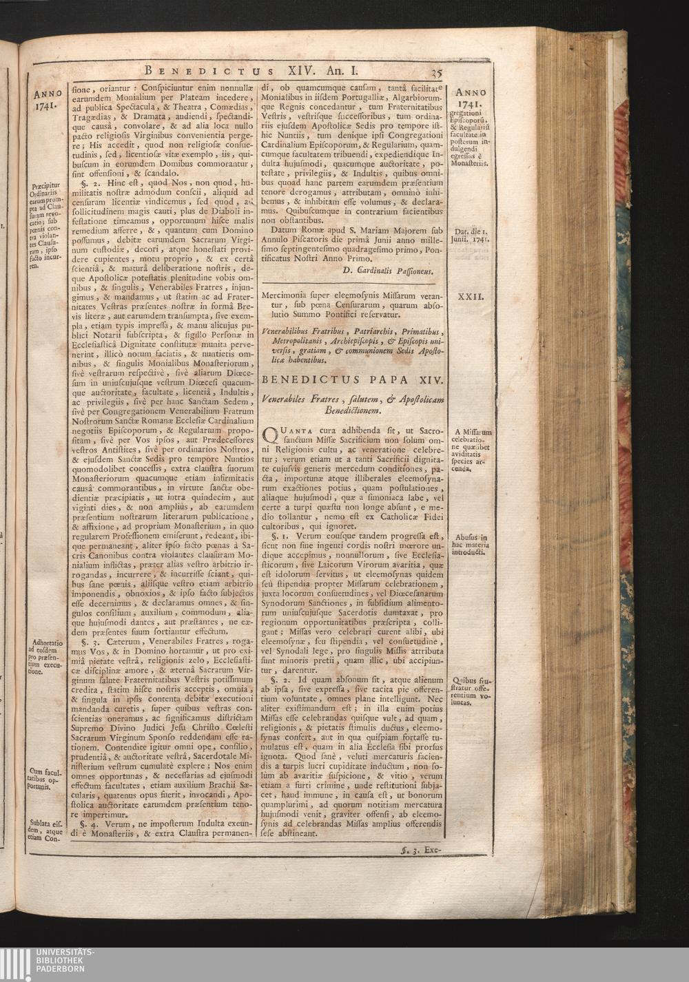 Tomus Decimus-Sextus = Continuationis Pars Decima (1752) Complectens Constitutiones Benedicti XIV. ab initio Pontificatus usque ad Annum 1746