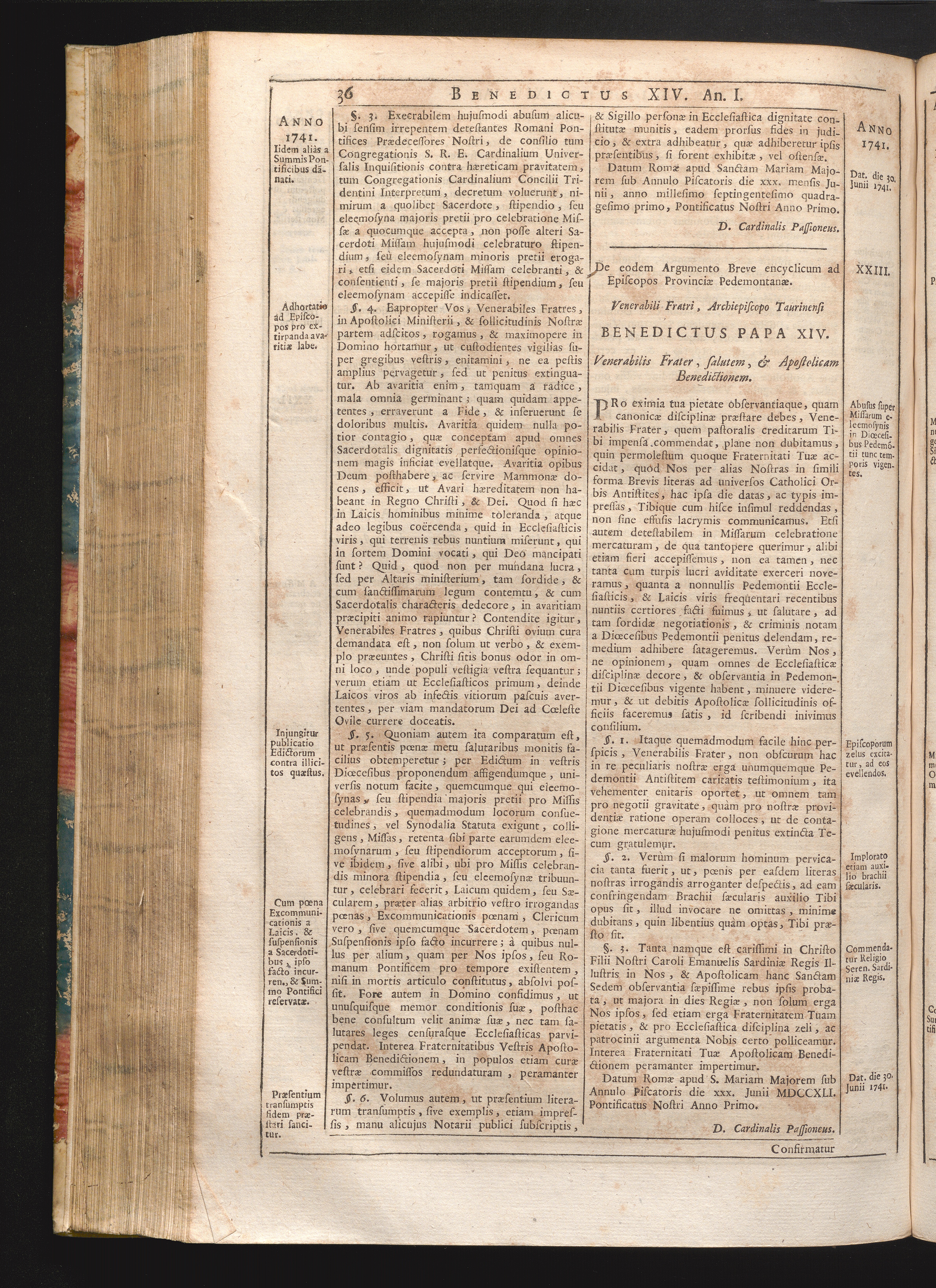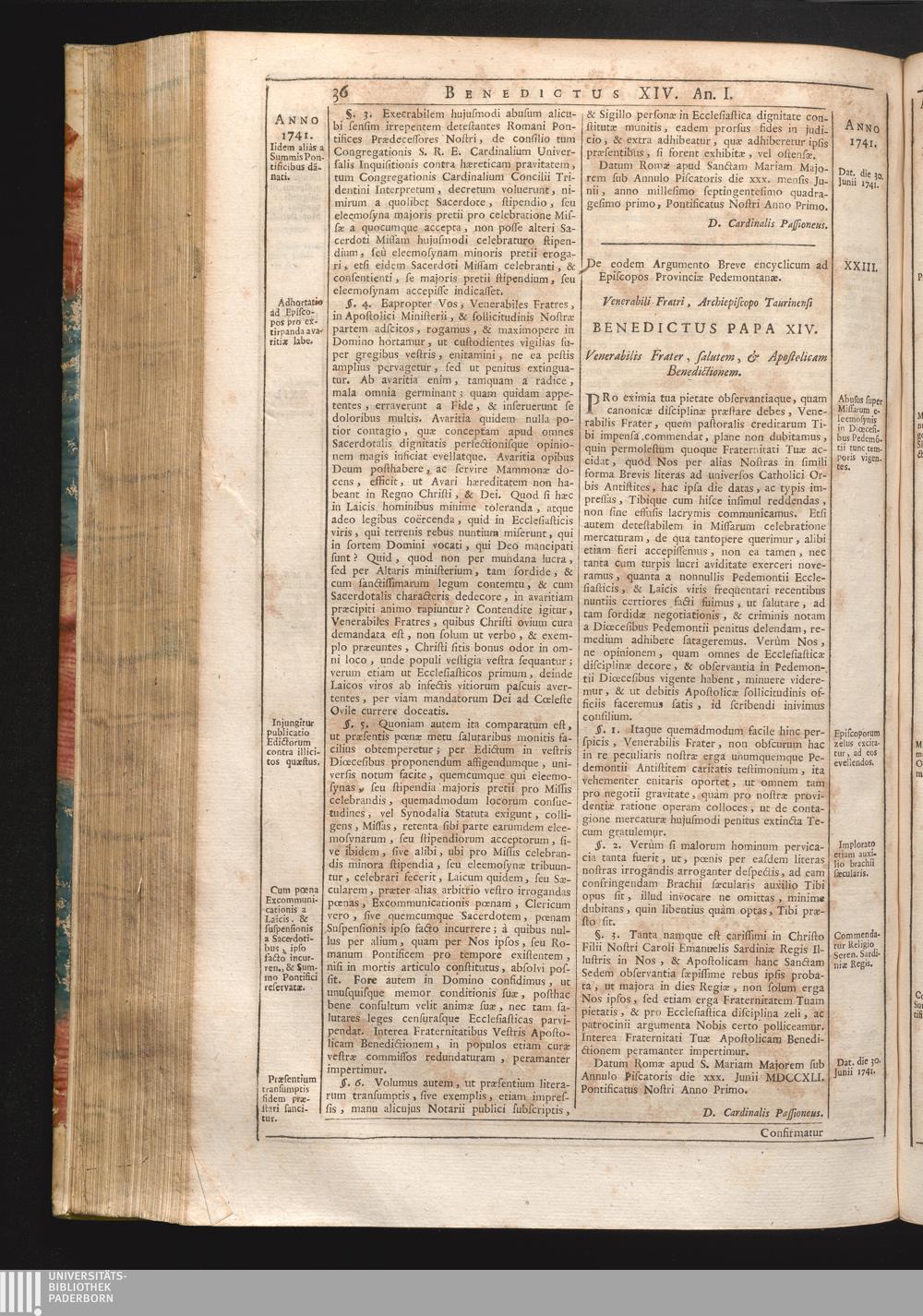 Tomus Decimus-Sextus = Continuationis Pars Decima (1752) Complectens Constitutiones Benedicti XIV. ab initio Pontificatus usque ad Annum 1746