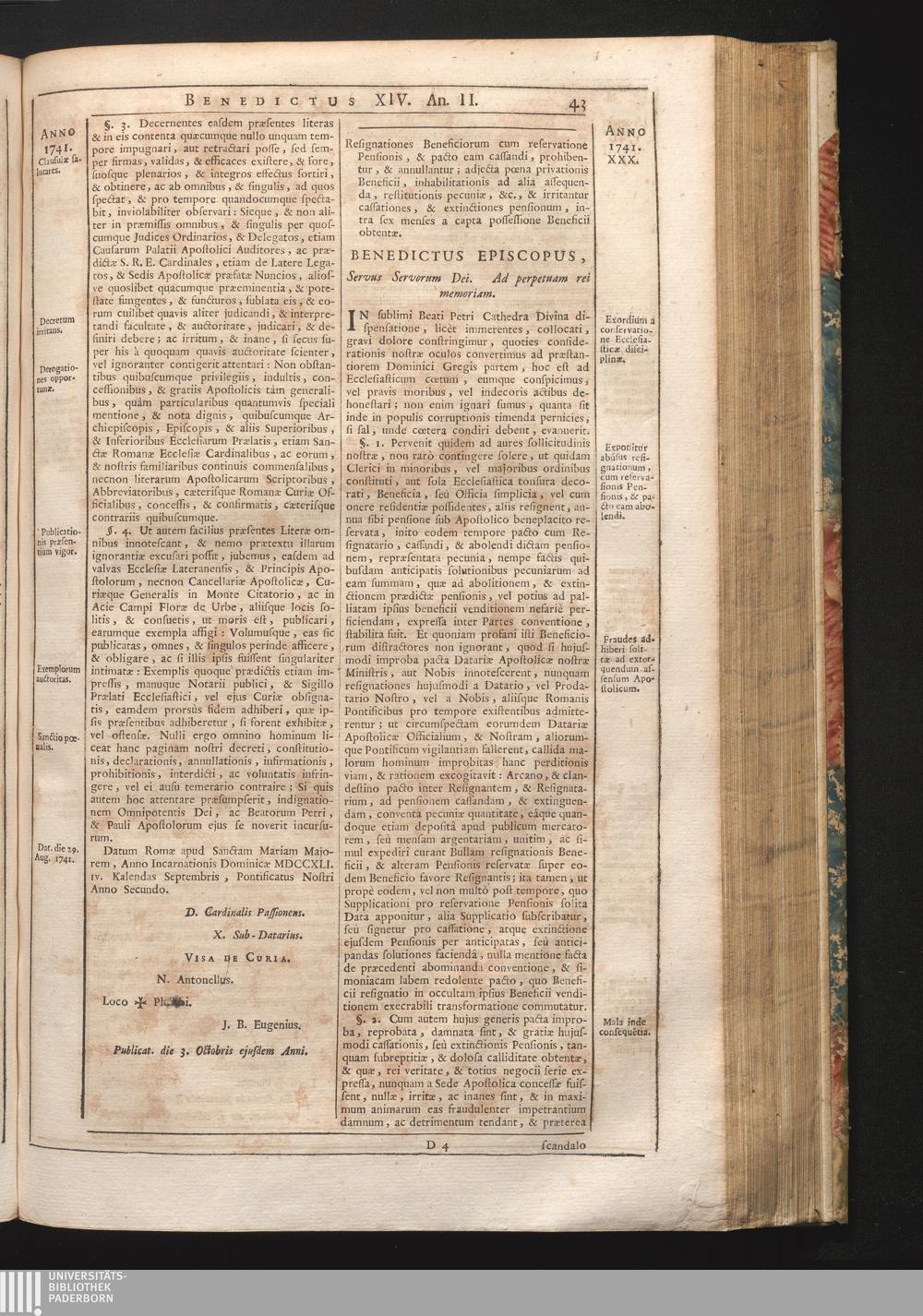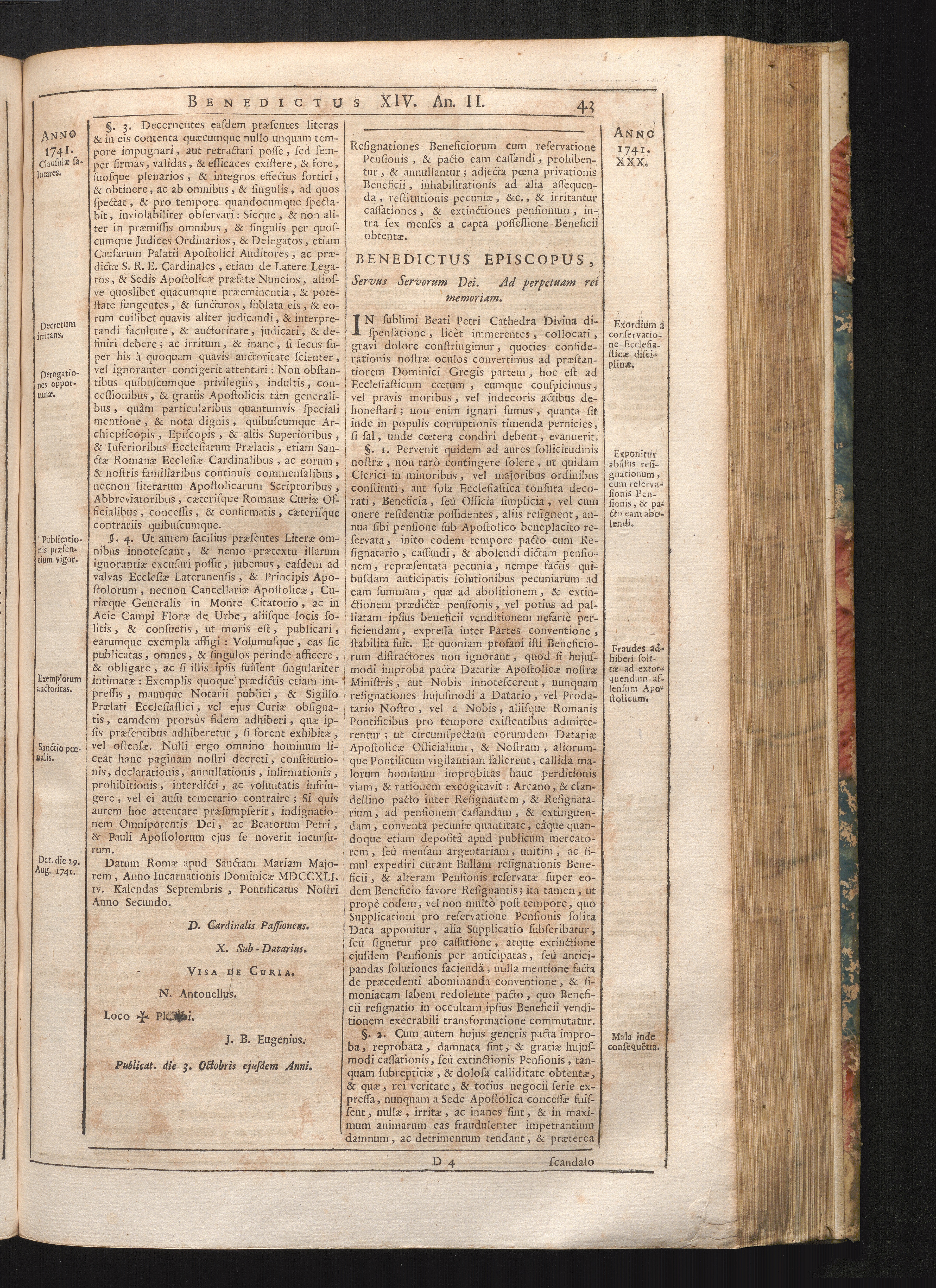 Tomus Decimus-Sextus = Continuationis Pars Decima (1752) Complectens Constitutiones Benedicti XIV. ab initio Pontificatus usque ad Annum 1746