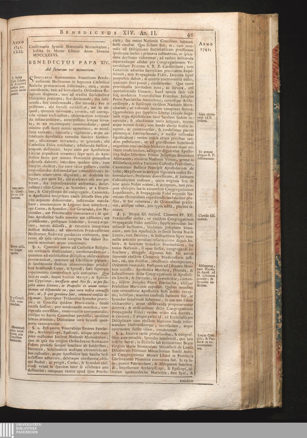 XXXI. Confirmatio Synodi Nationalis Maronitarum, habitæ ub Monte Libano Anno Domini[...]