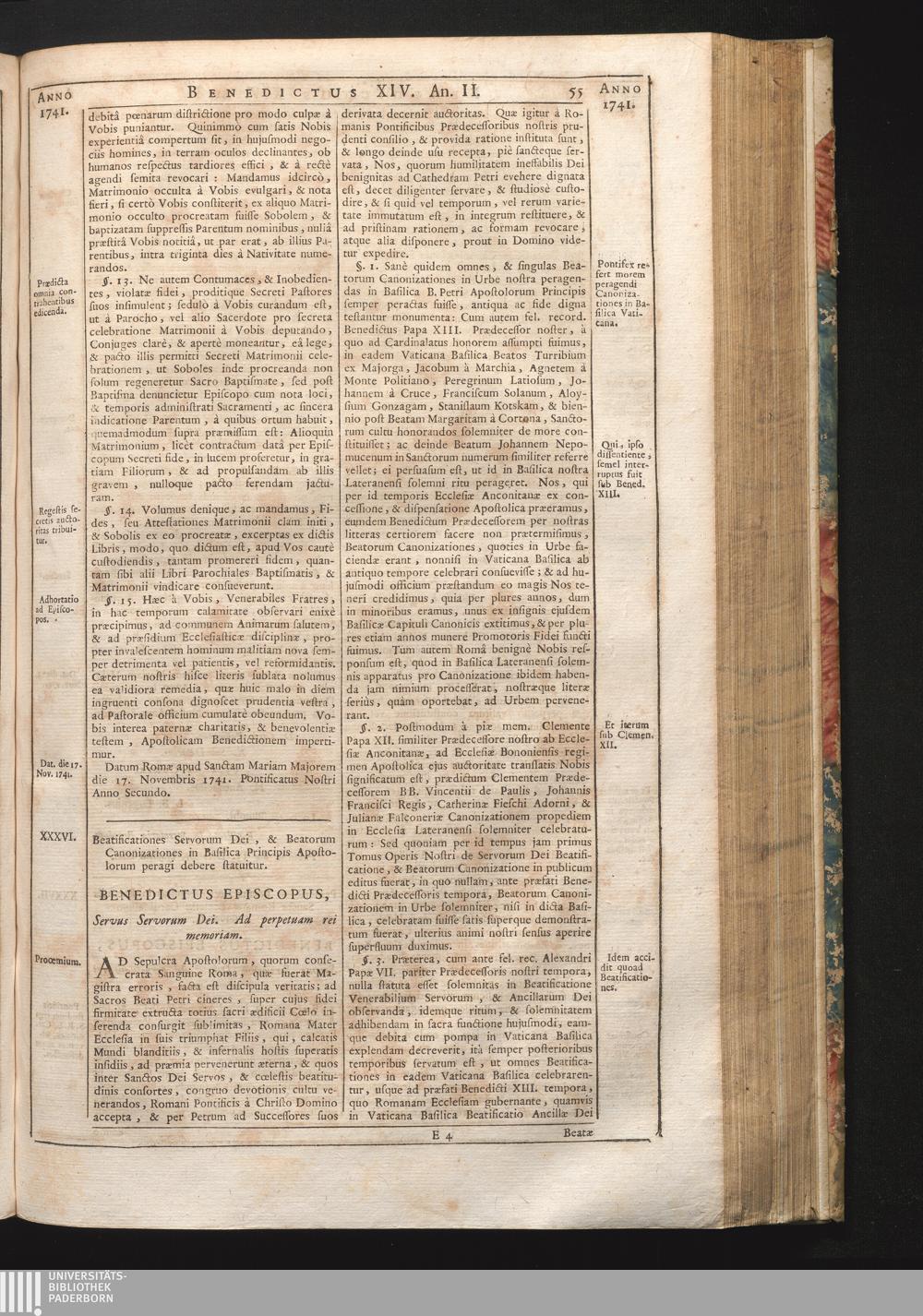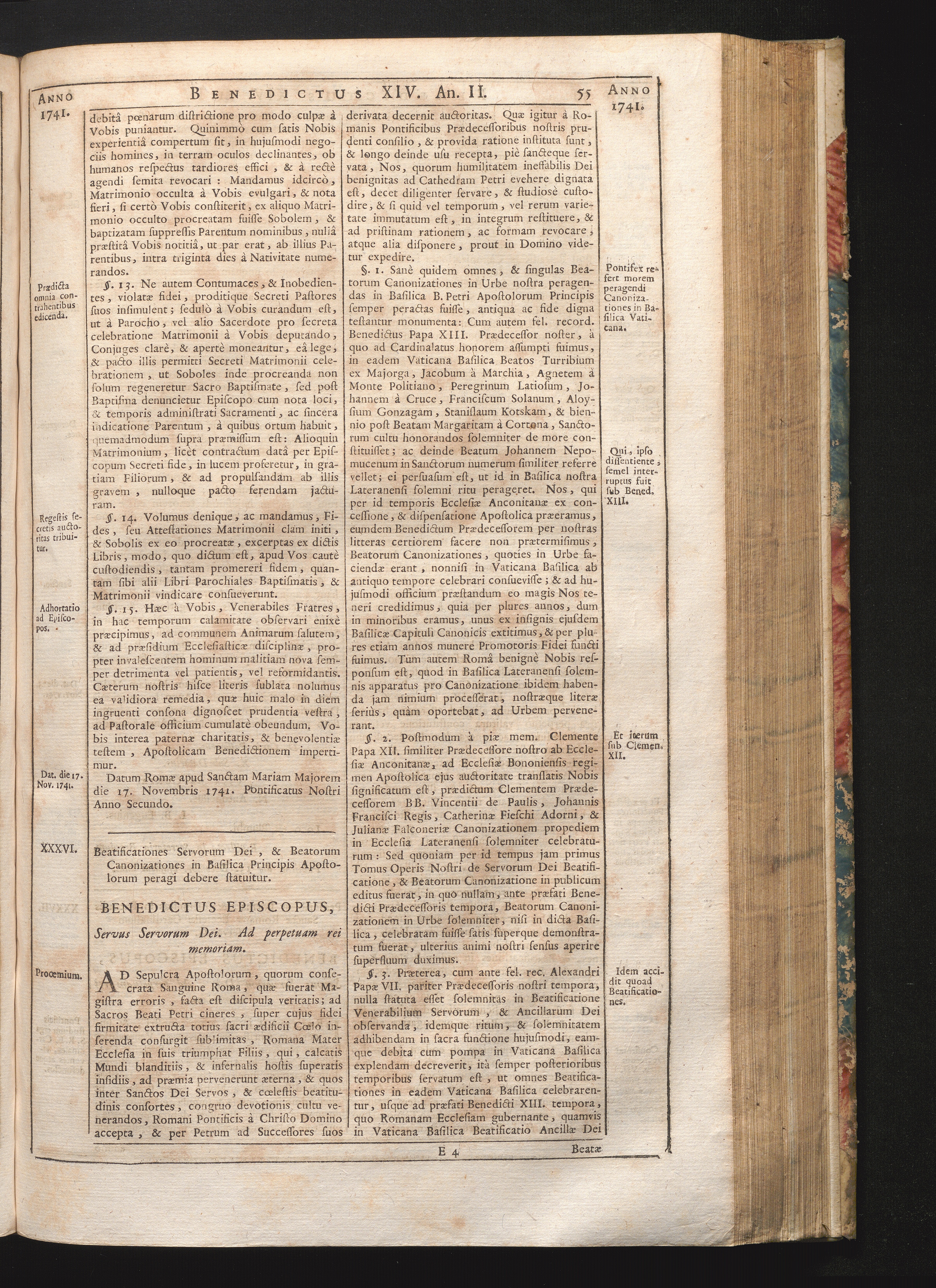 Tomus Decimus-Sextus = Continuationis Pars Decima (1752) Complectens Constitutiones Benedicti XIV. ab initio Pontificatus usque ad Annum 1746