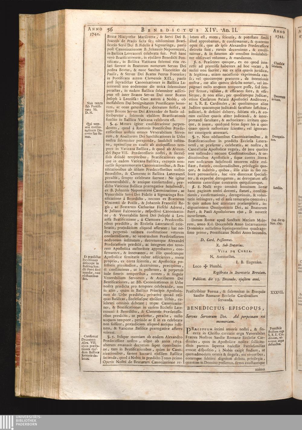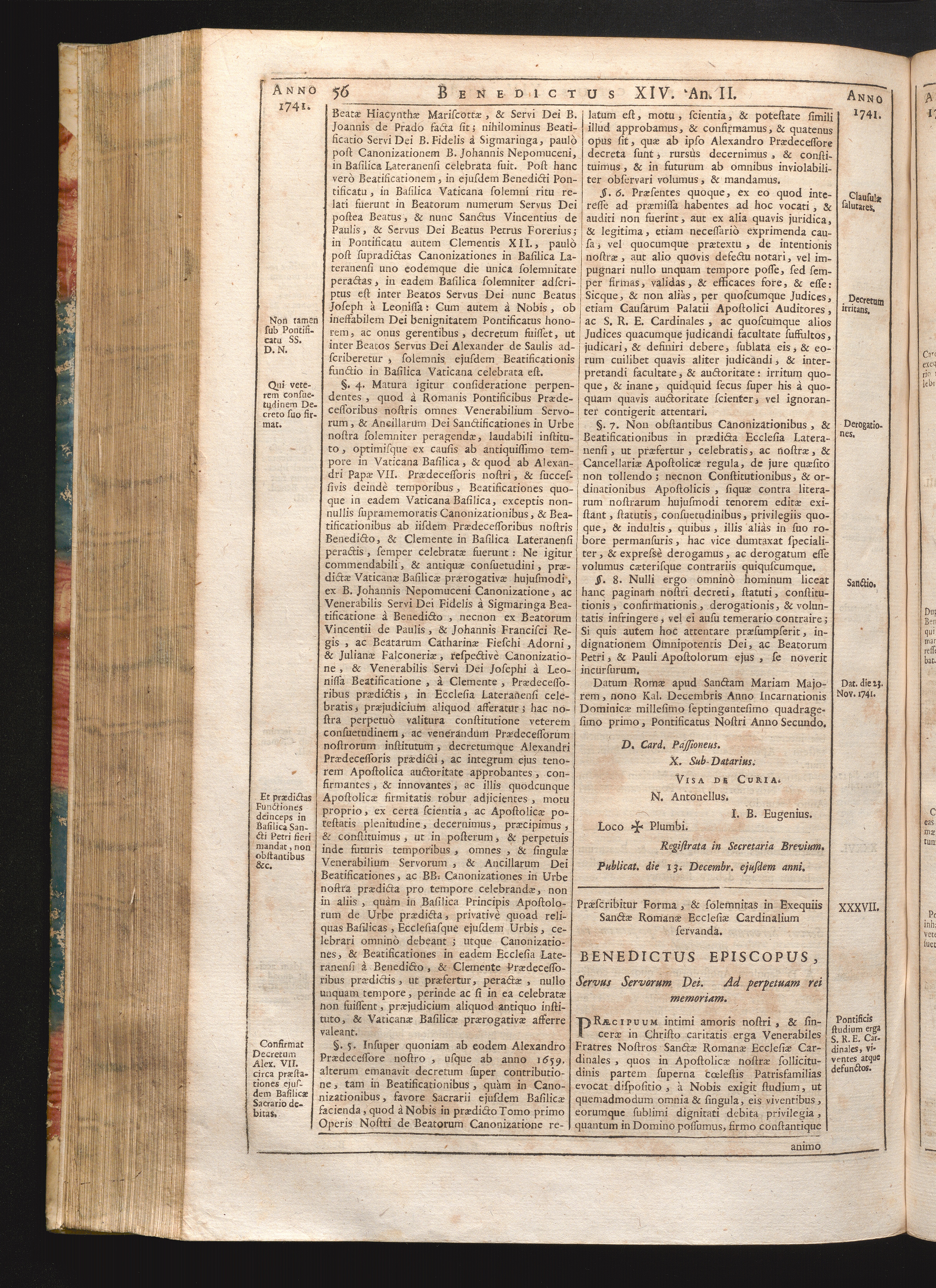Tomus Decimus-Sextus = Continuationis Pars Decima (1752) Complectens Constitutiones Benedicti XIV. ab initio Pontificatus usque ad Annum 1746