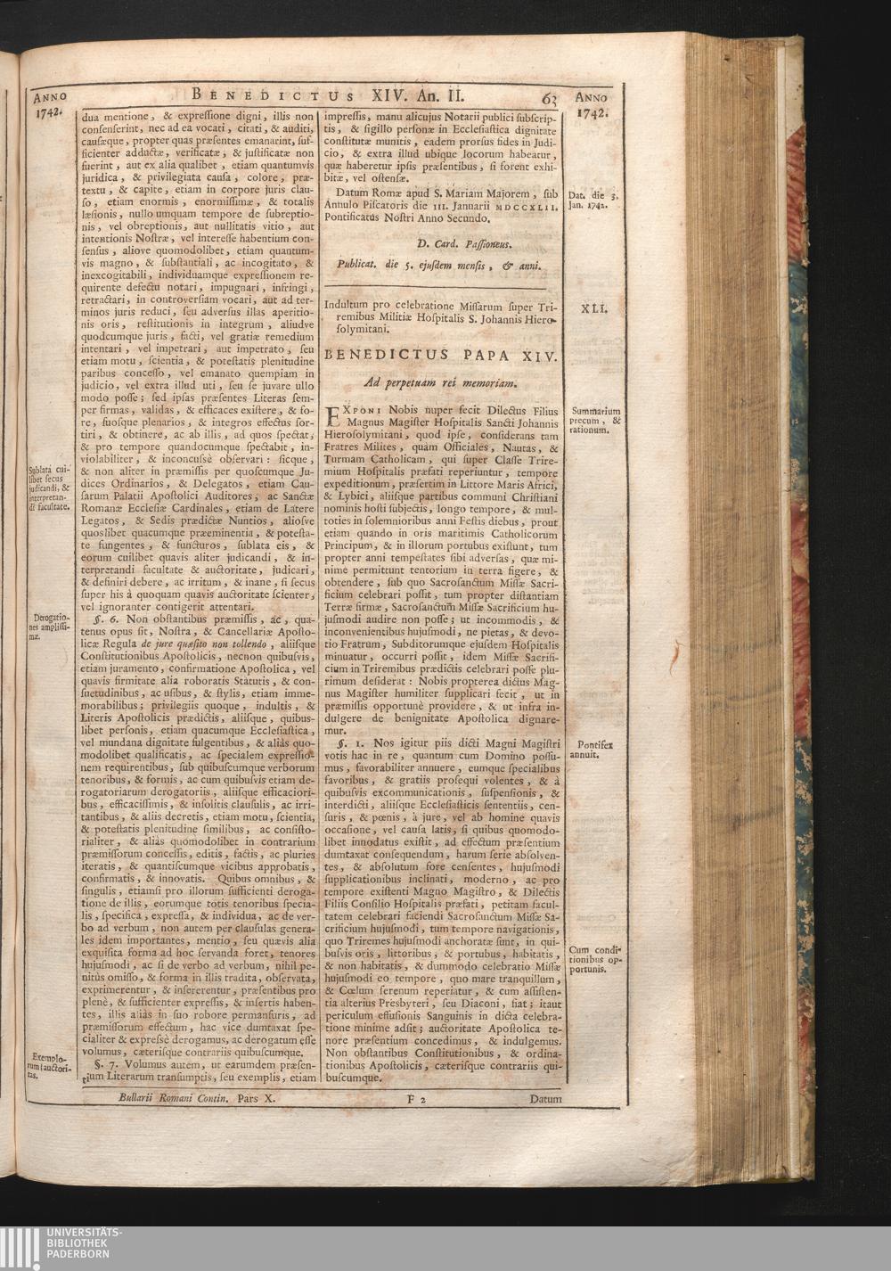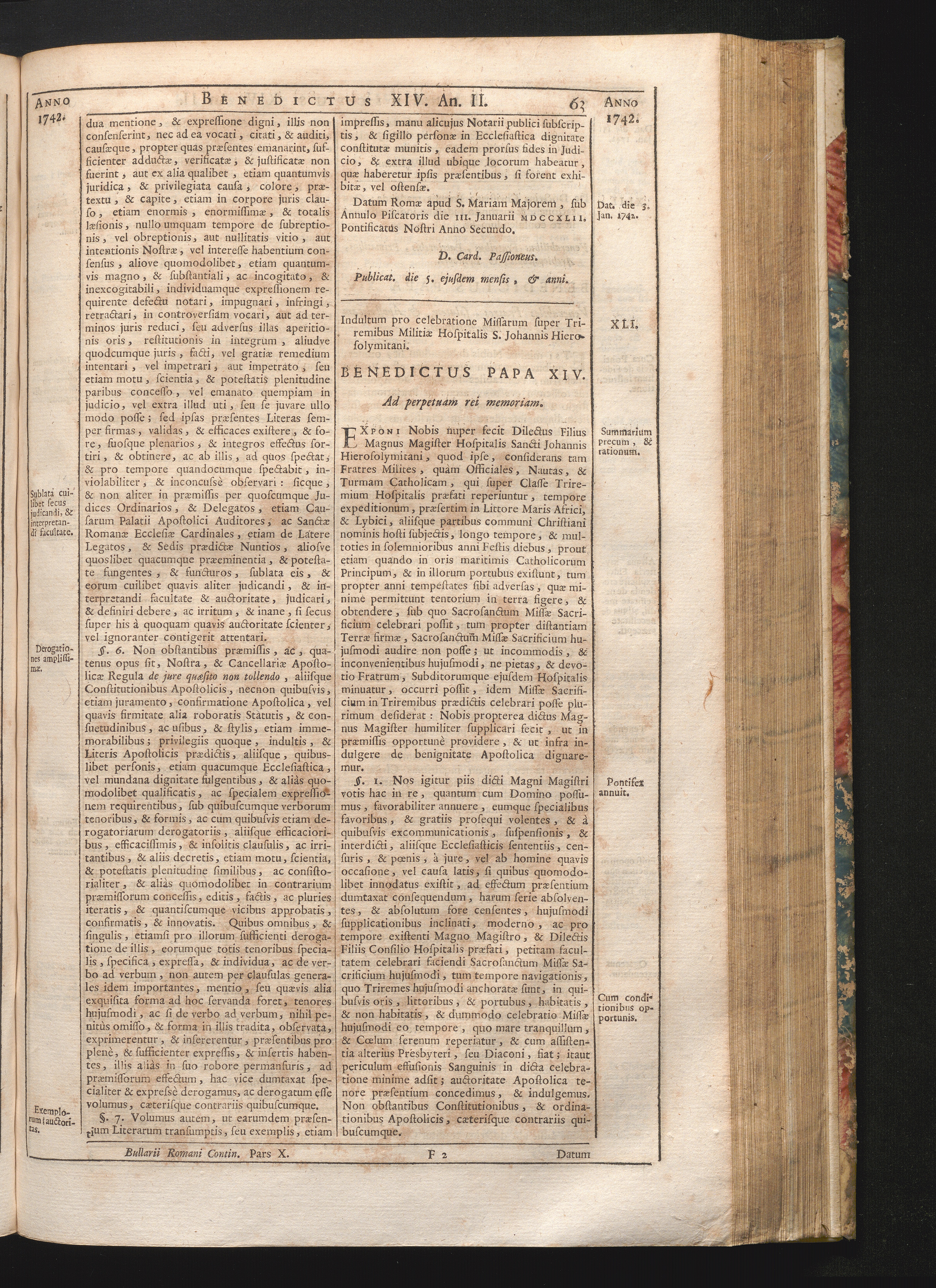 XLI. Indultum pro celebratione Missarum super Triremibus Militæ Hospitalis S. Joannis[...]