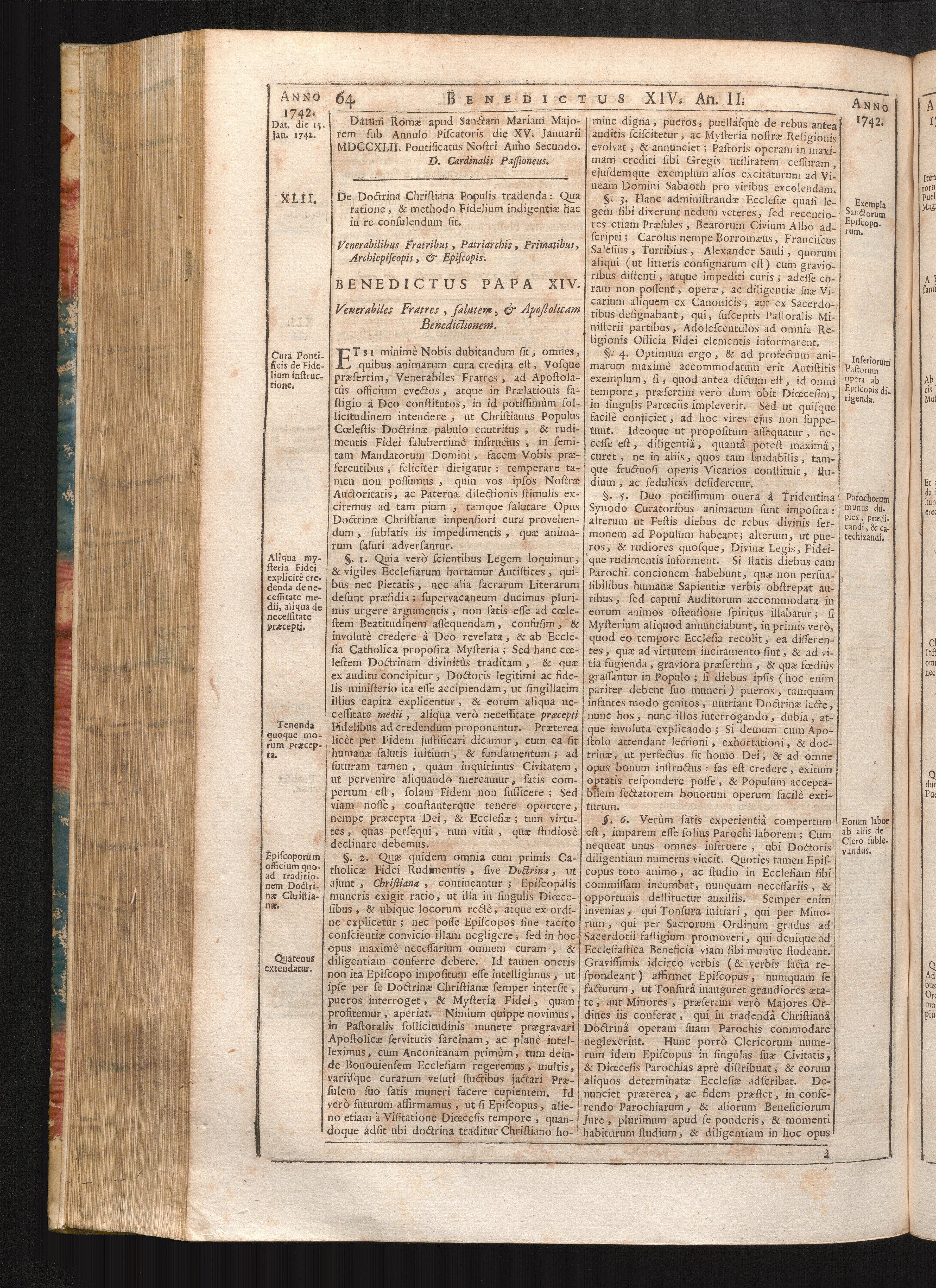 XLII. De Doctrina Christiana Populis tradenda: qua ratione, & methodo Fidelium indigentiæ[...]