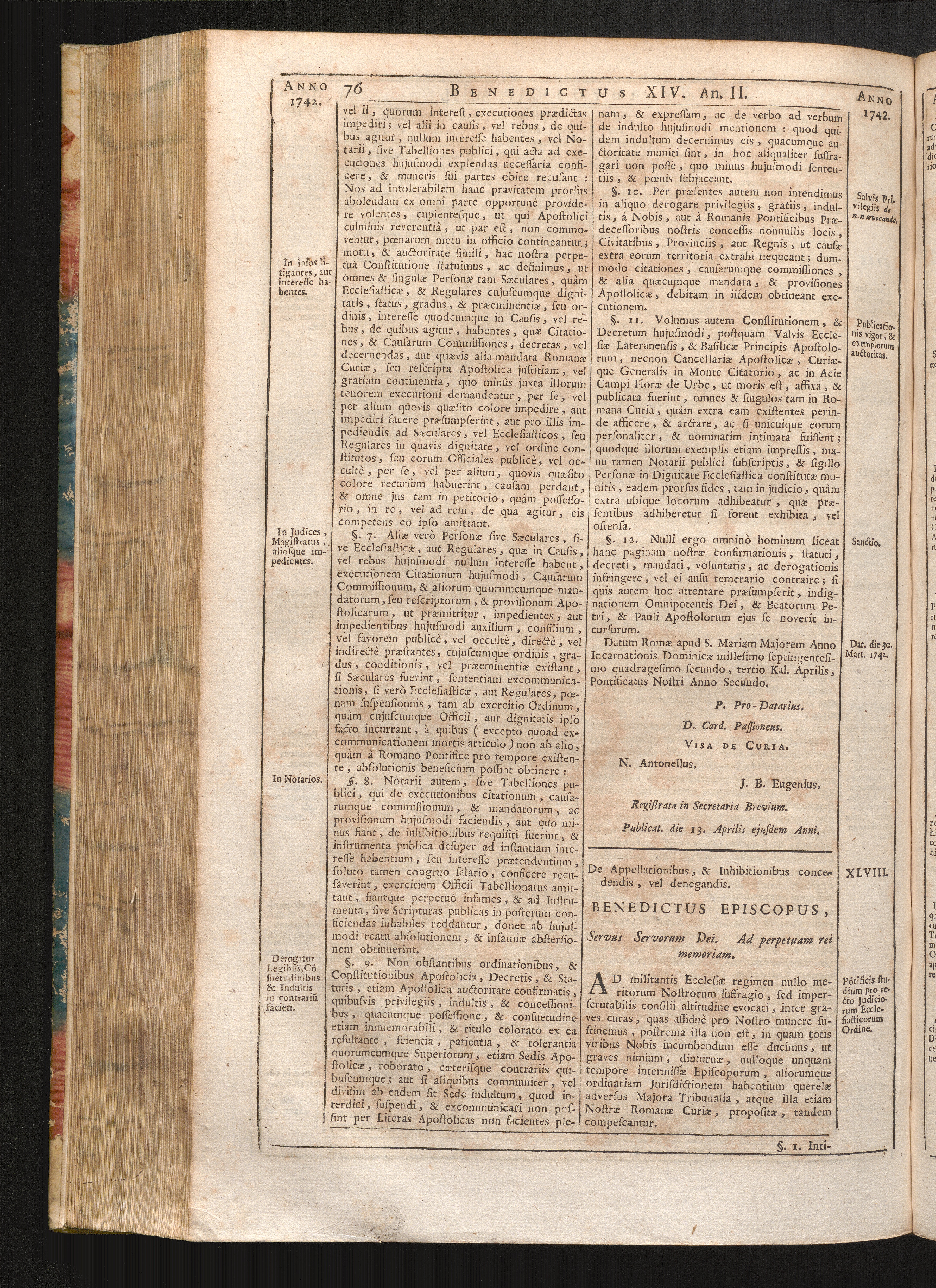 Tomus Decimus-Sextus = Continuationis Pars Decima (1752) Complectens Constitutiones Benedicti XIV. ab initio Pontificatus usque ad Annum 1746
