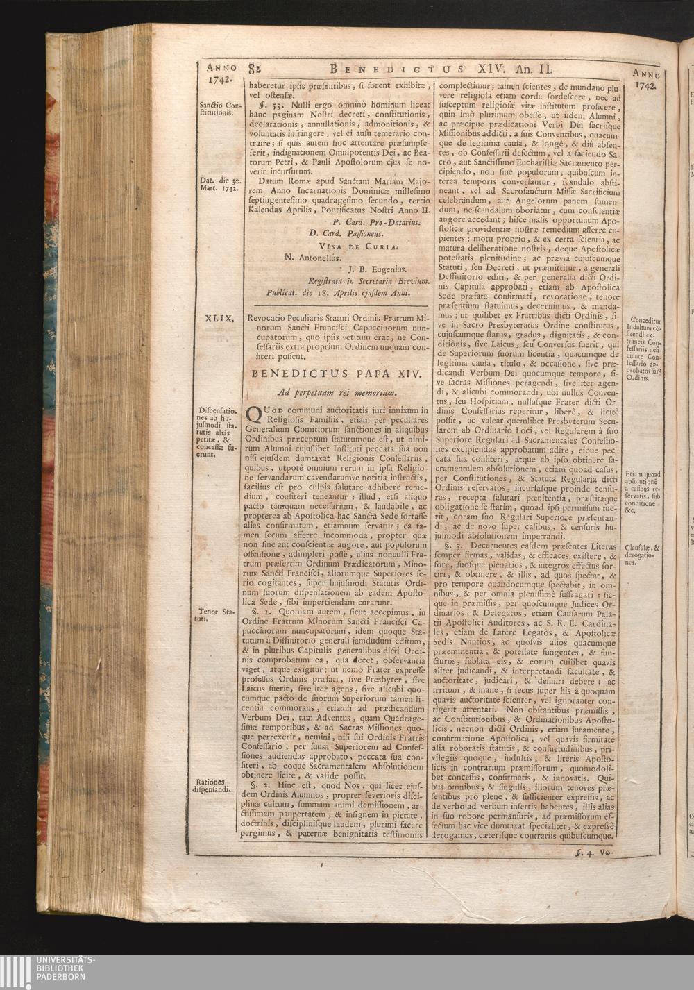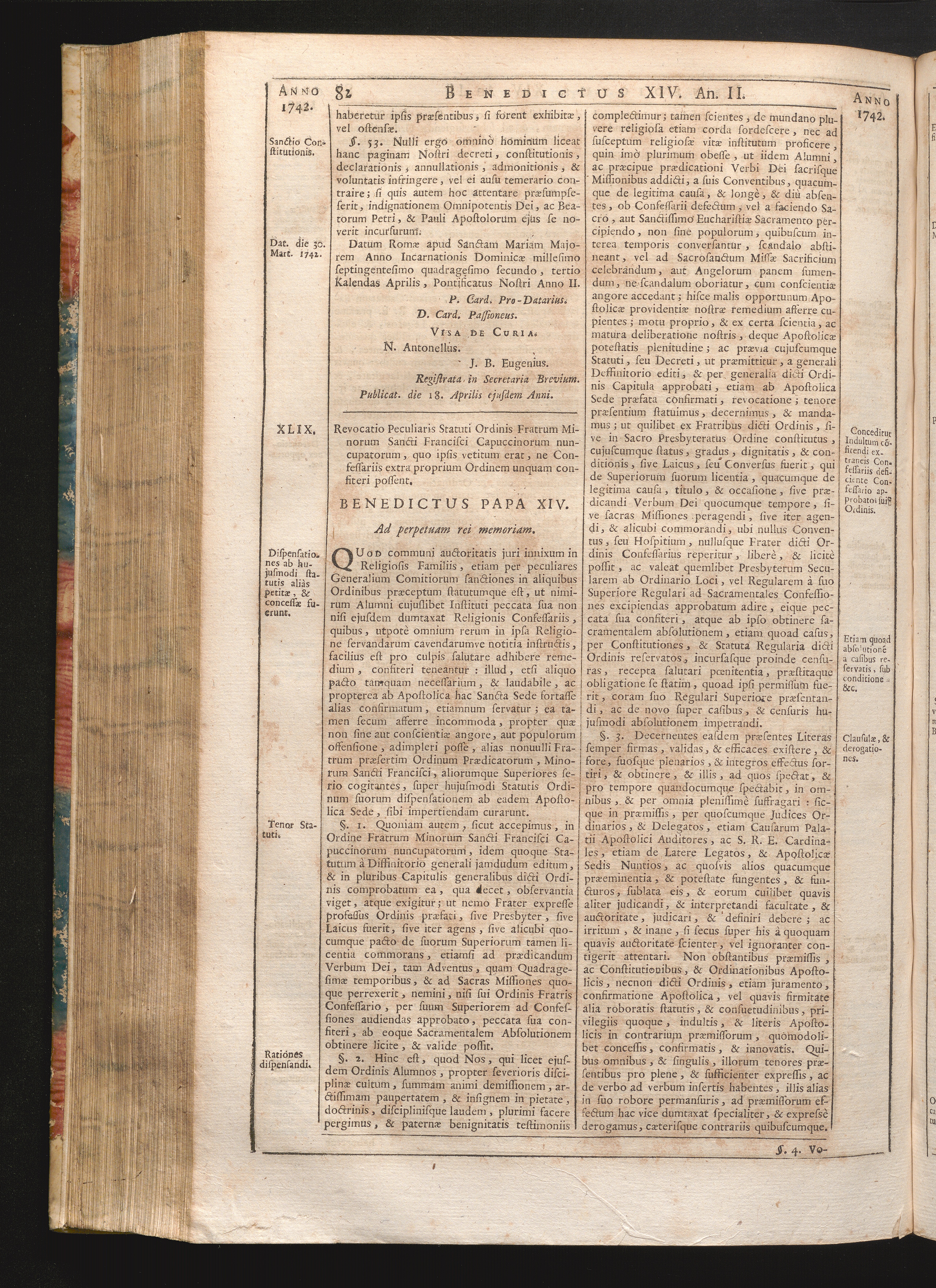 XLIX. Revocatio pecularis Statuti Ordinis Fratrum Minorum S. Francisi Capuccinorum[...]