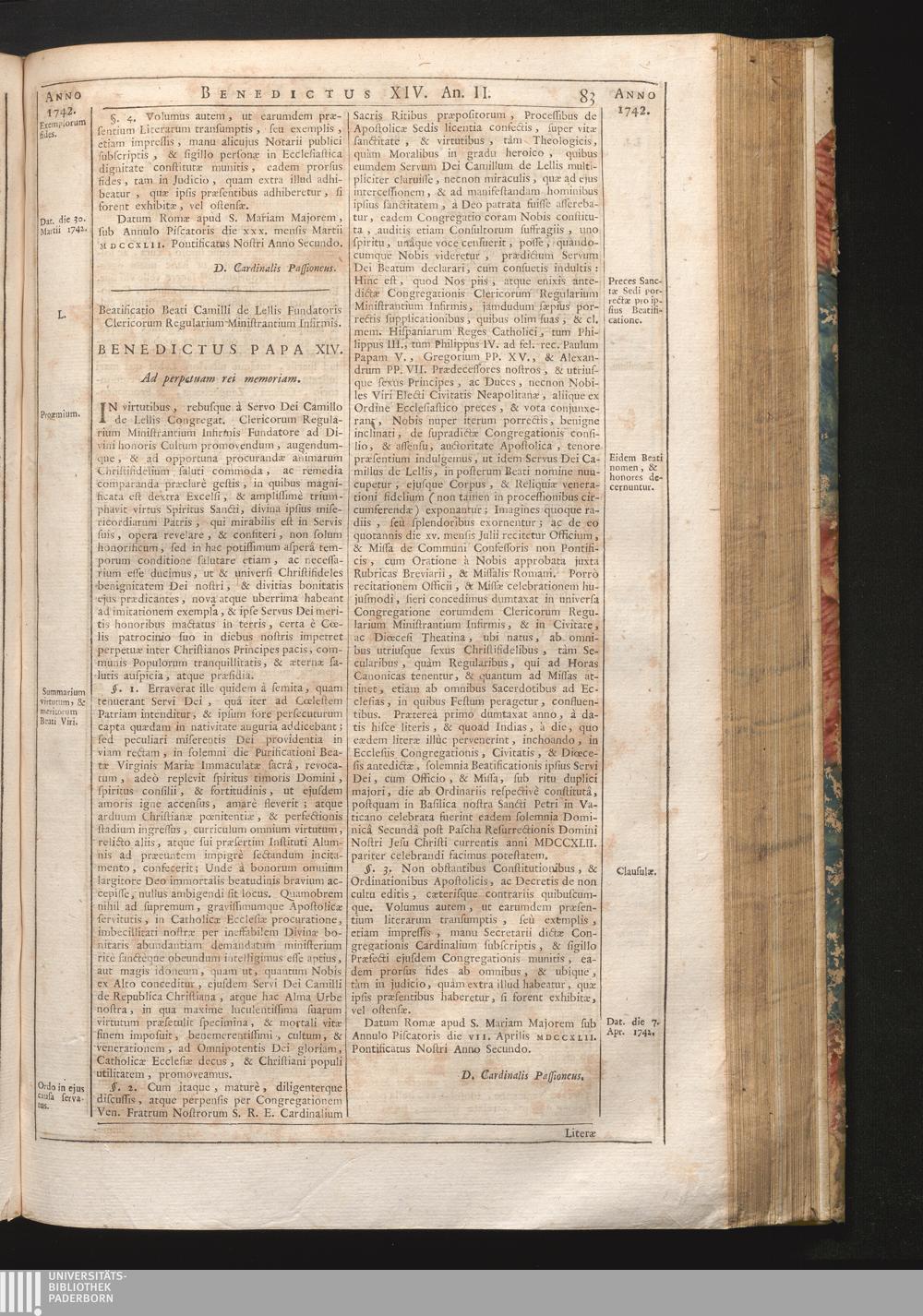 L. Beatificatio Beati Camilli de Lillis Fundatoris Clericorum Regularium Ministrantium[...]