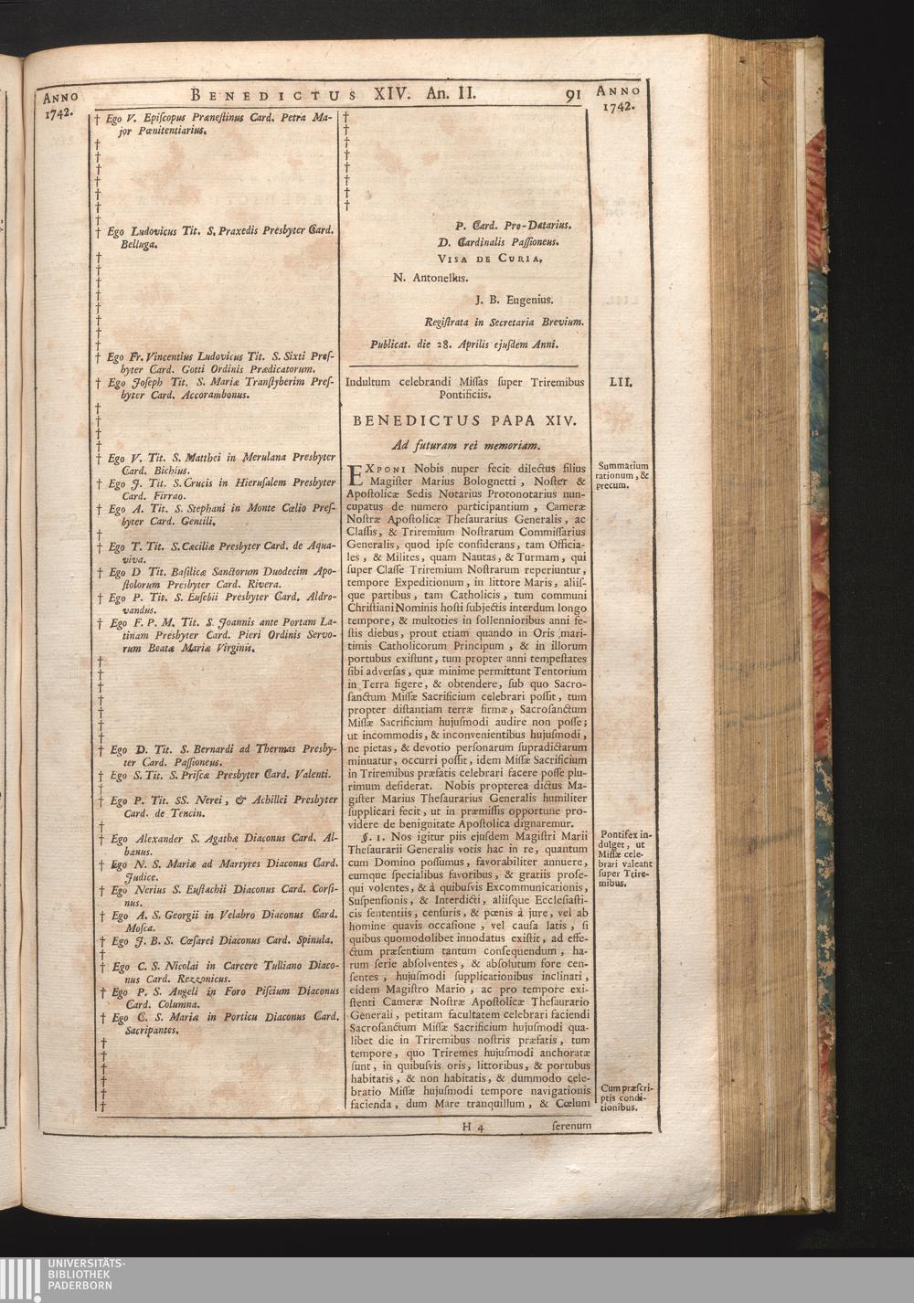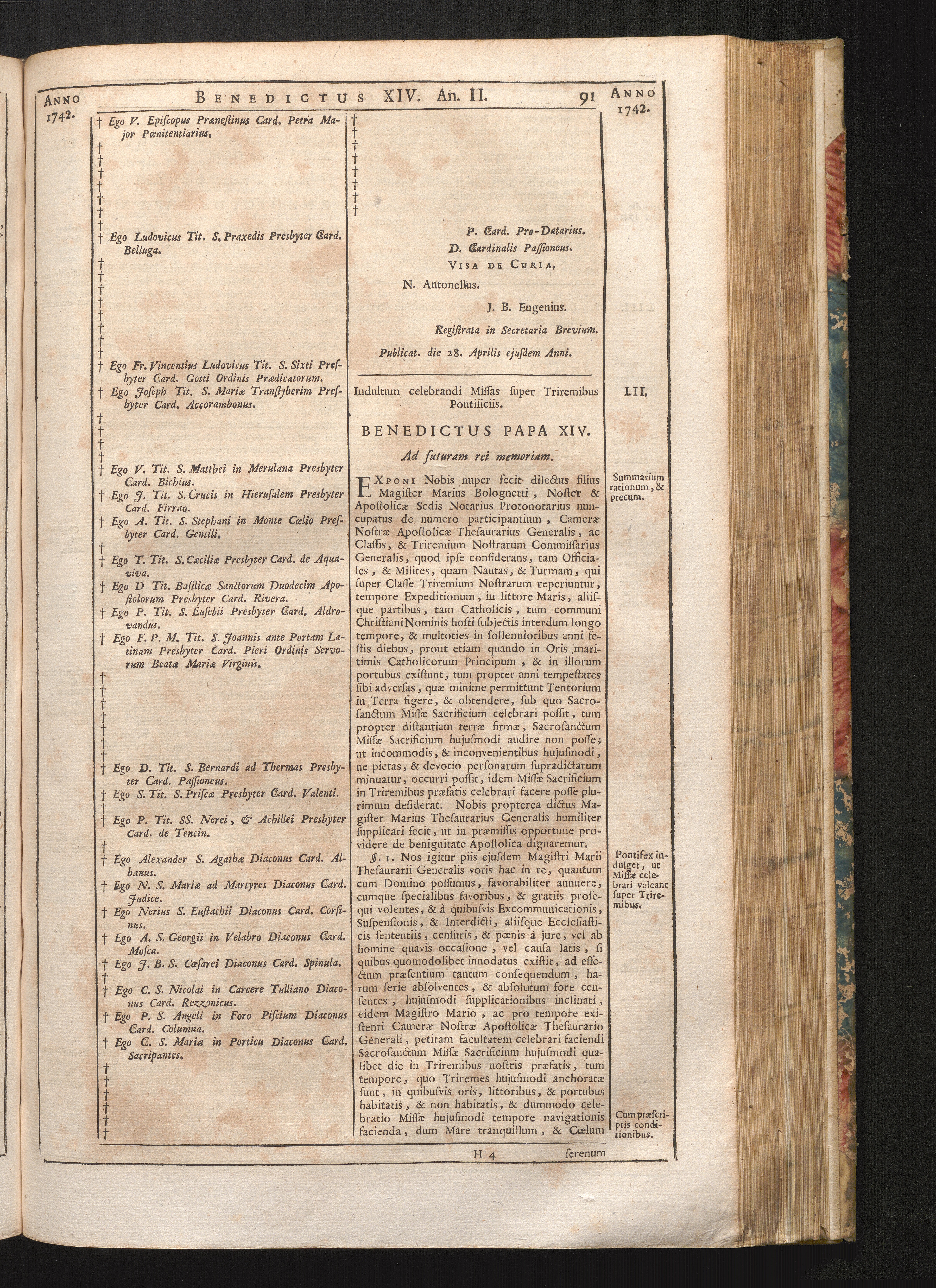 LII. Indultum celebrandi Missas super Triremibus Pontificiis. 28. Aprilis.