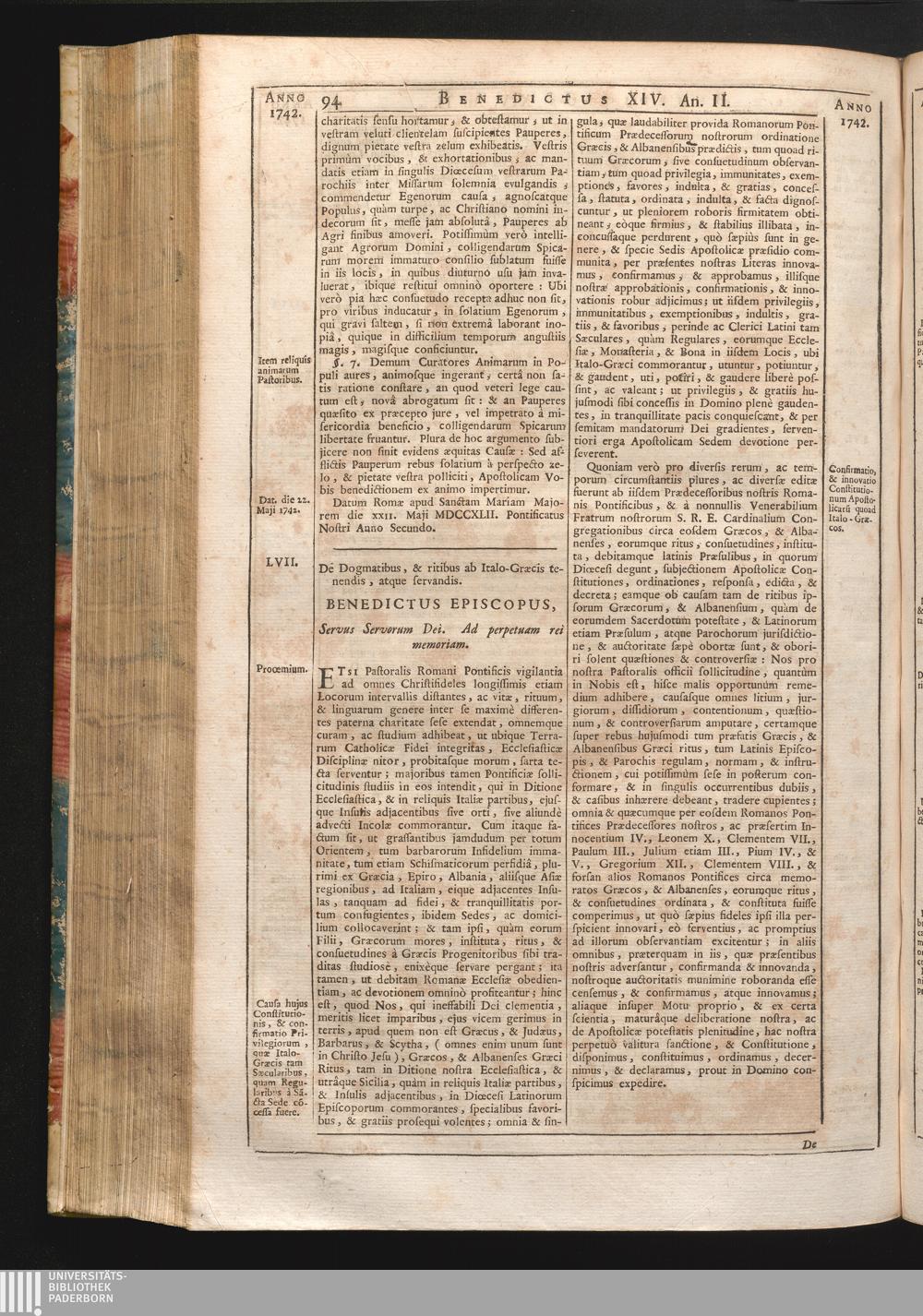LVII. De Dogmatibus, & Ritibus ab Italo-Græcis tenendis, atque servandis. 26. Ma[...]