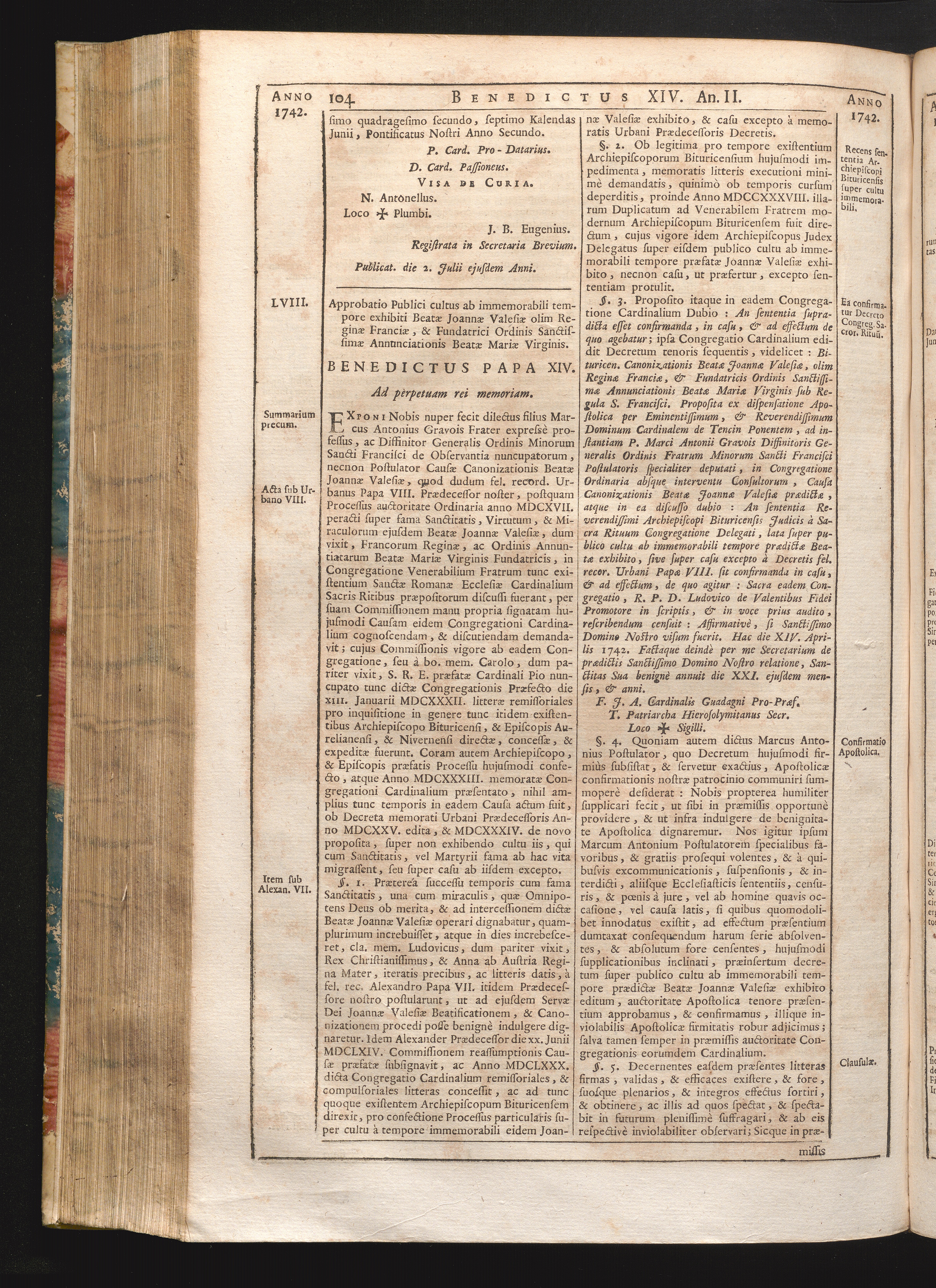 LVIII. Approbatio publici Cultus ab immemorabili tempore exhibiti Beatæ Joannæ Valesiæ[...]