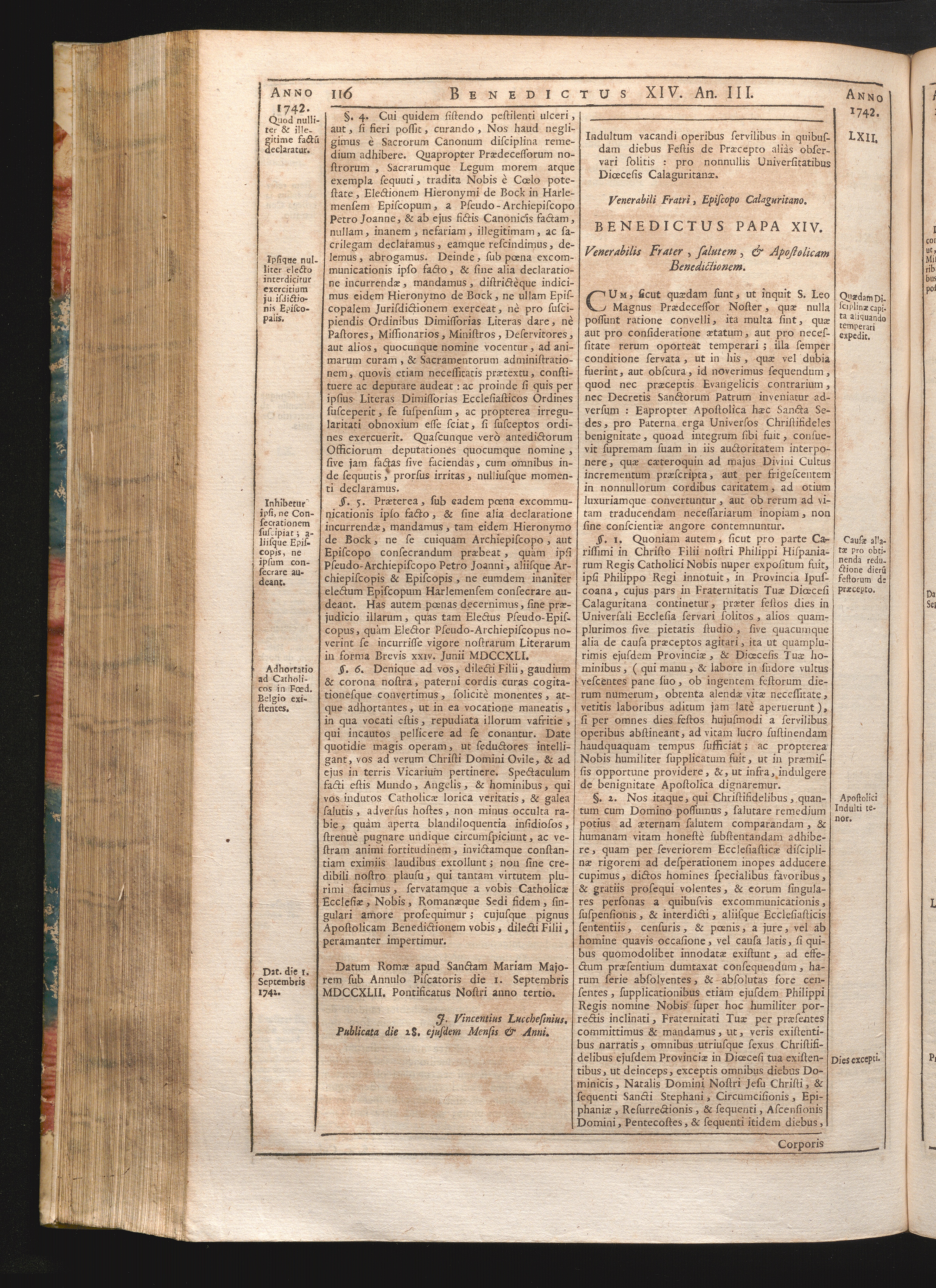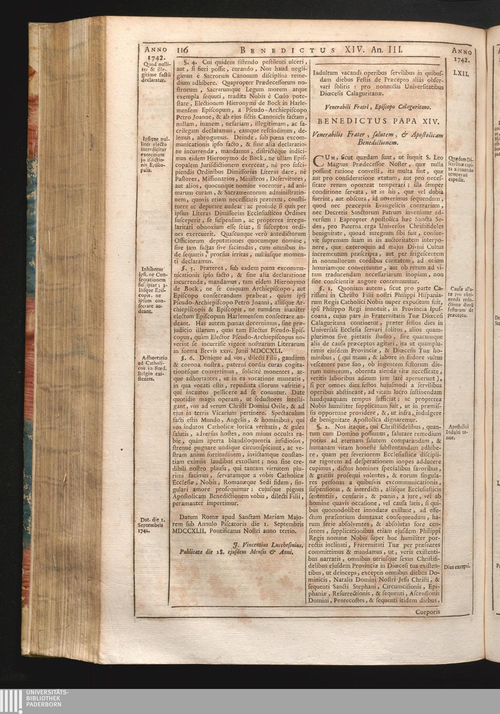 Tomus Decimus-Sextus = Continuationis Pars Decima (1752) Complectens Constitutiones Benedicti XIV. ab initio Pontificatus usque ad Annum 1746