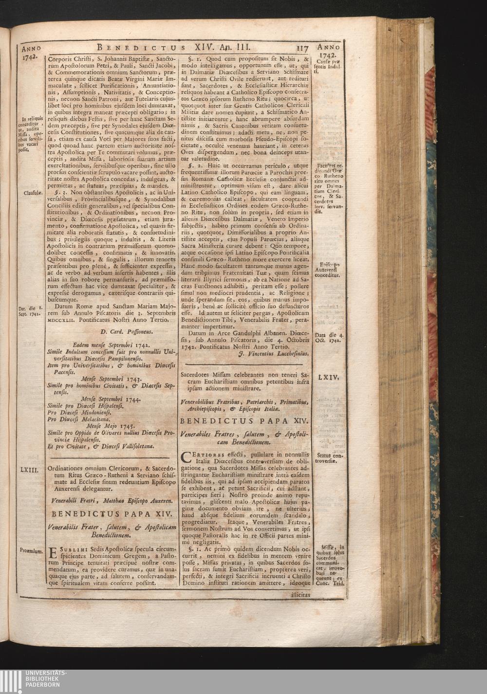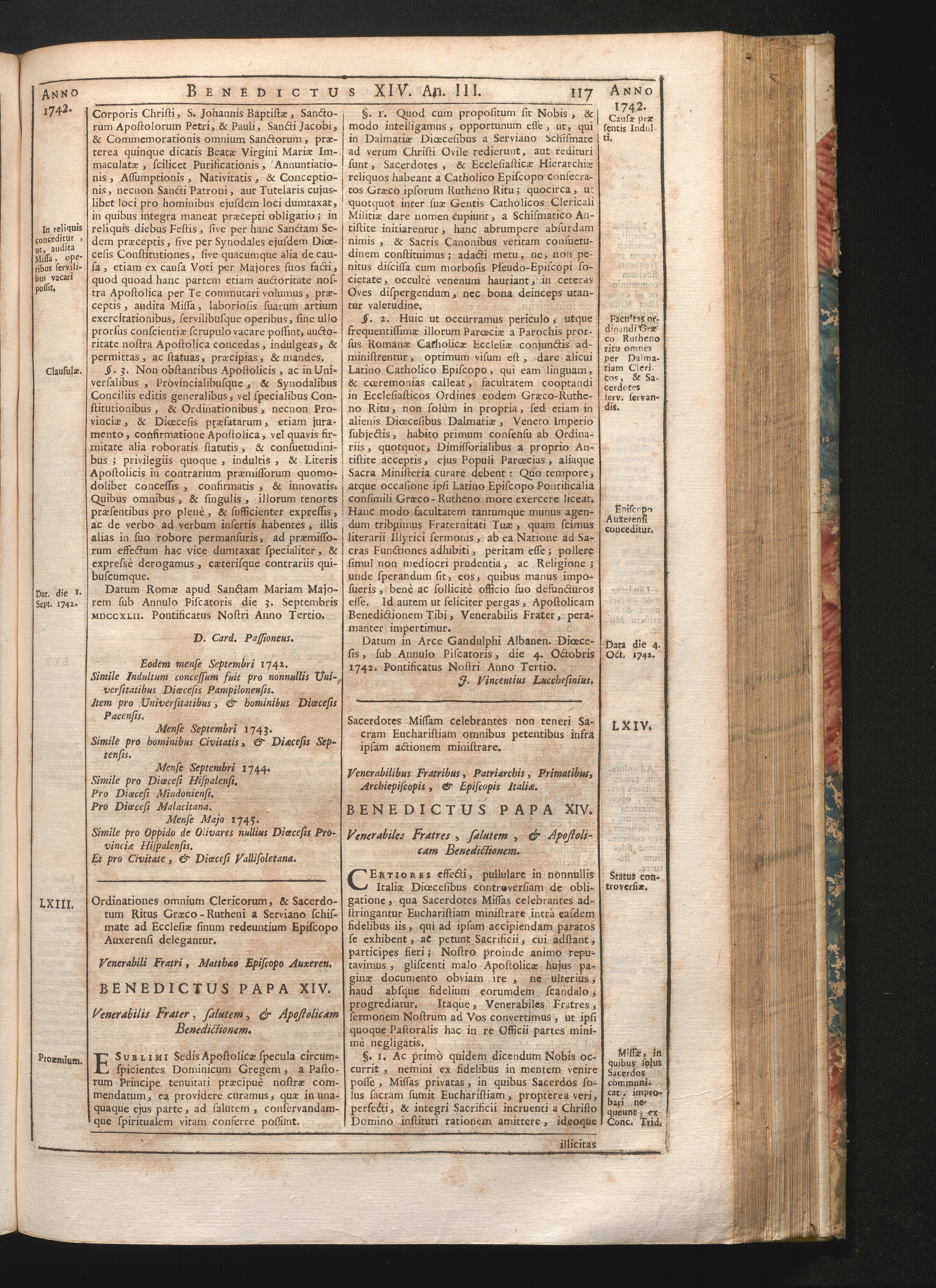 Tomus Decimus-Sextus = Continuationis Pars Decima (1752) Complectens Constitutiones Benedicti XIV. ab initio Pontificatus usque ad Annum 1746