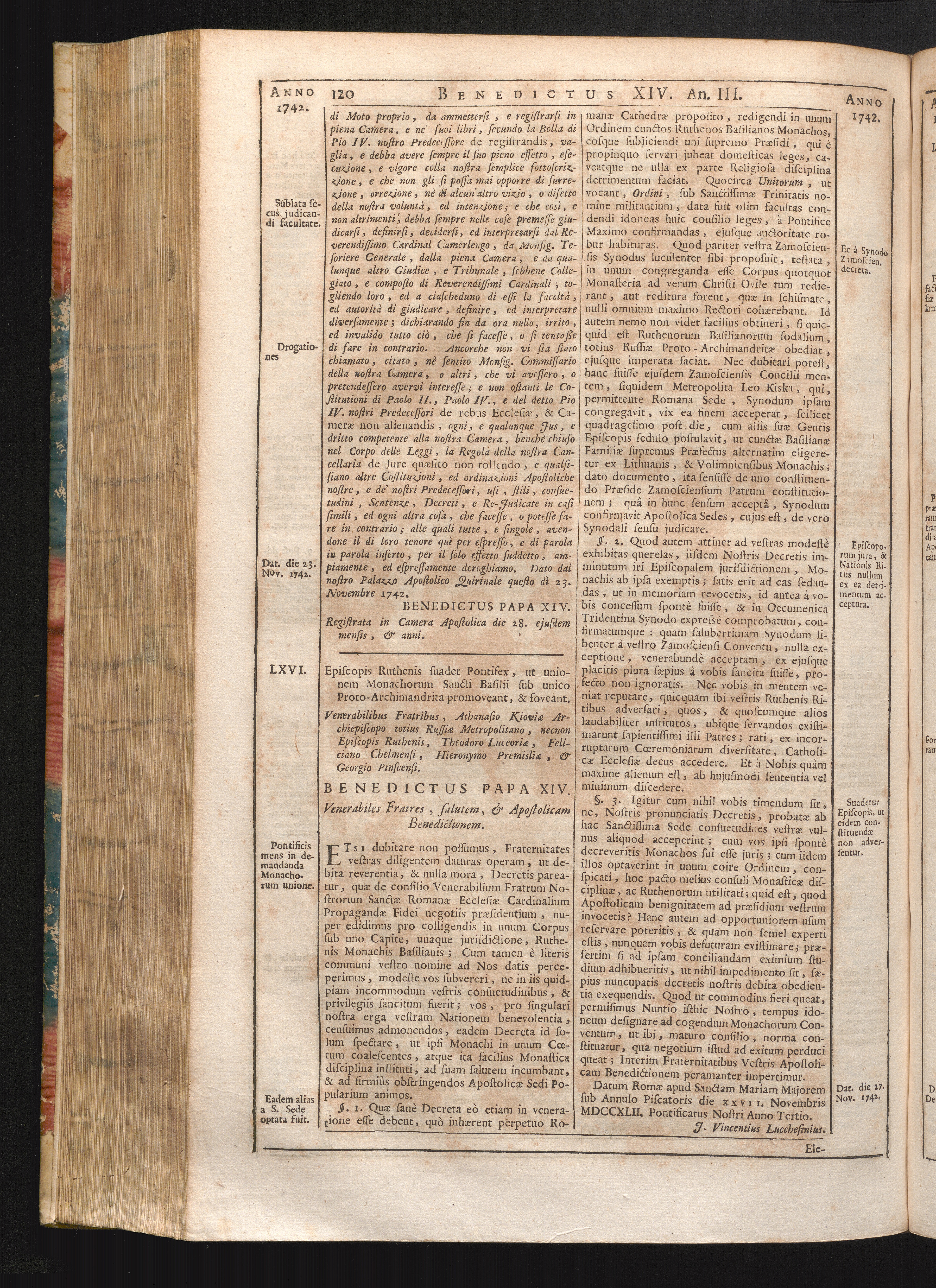 Tomus Decimus-Sextus = Continuationis Pars Decima (1752) Complectens Constitutiones Benedicti XIV. ab initio Pontificatus usque ad Annum 1746