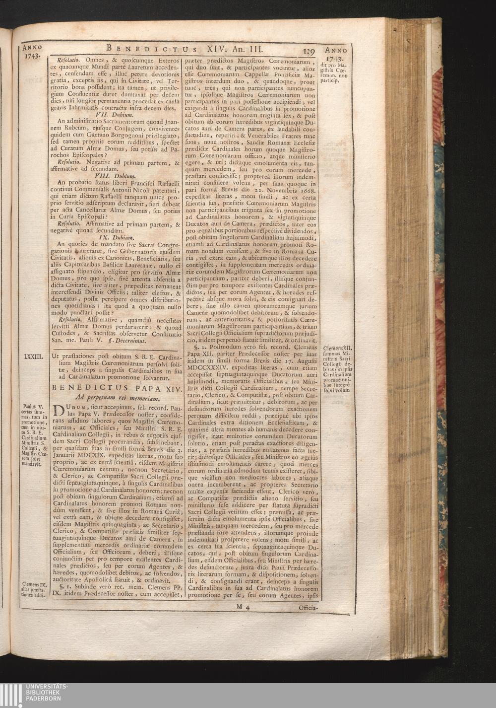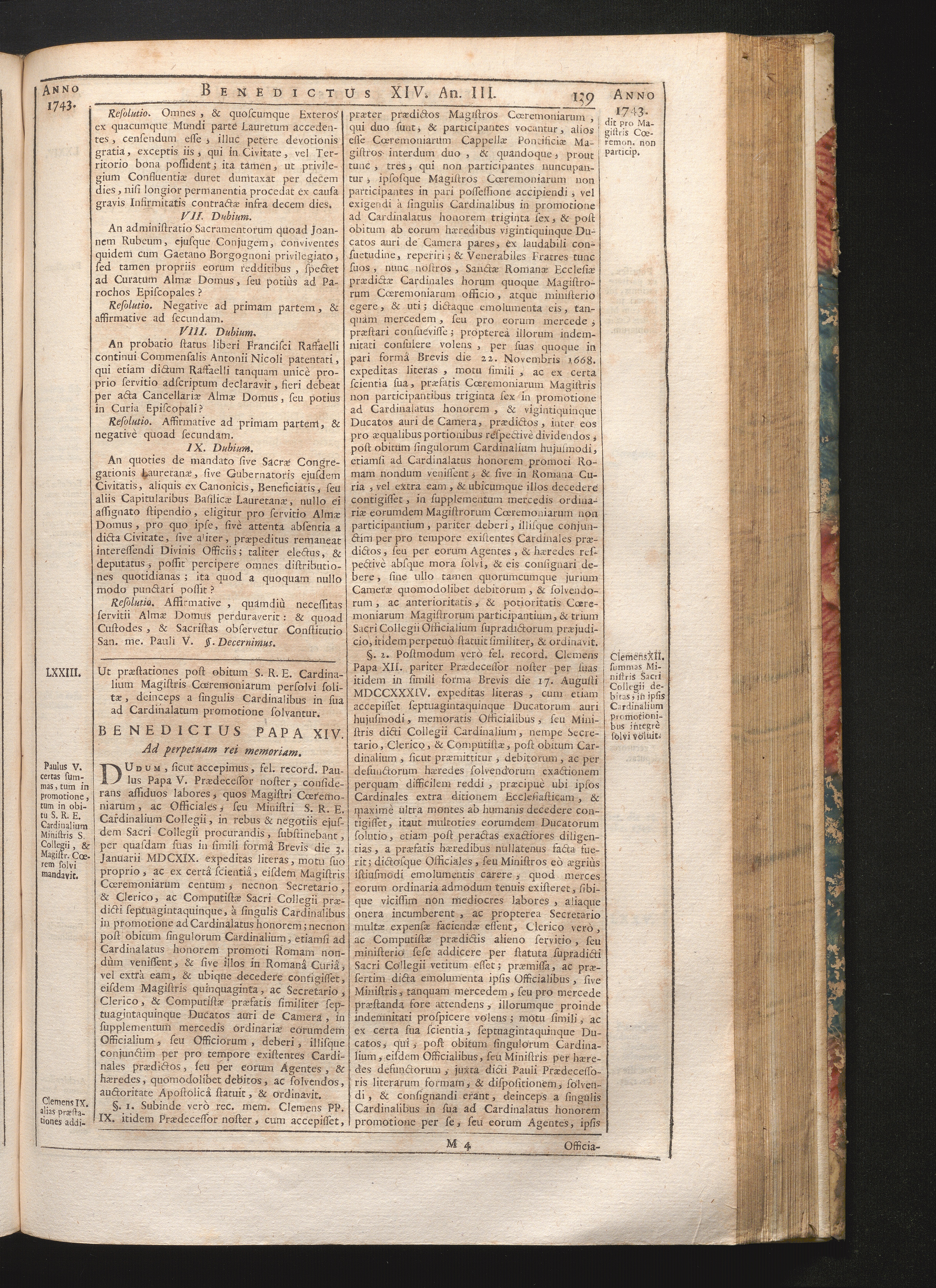 LXXIII. Ut præstationes post obitum S.R.E. Cardinalium Magistris Ceremoniarum persolvi[...]