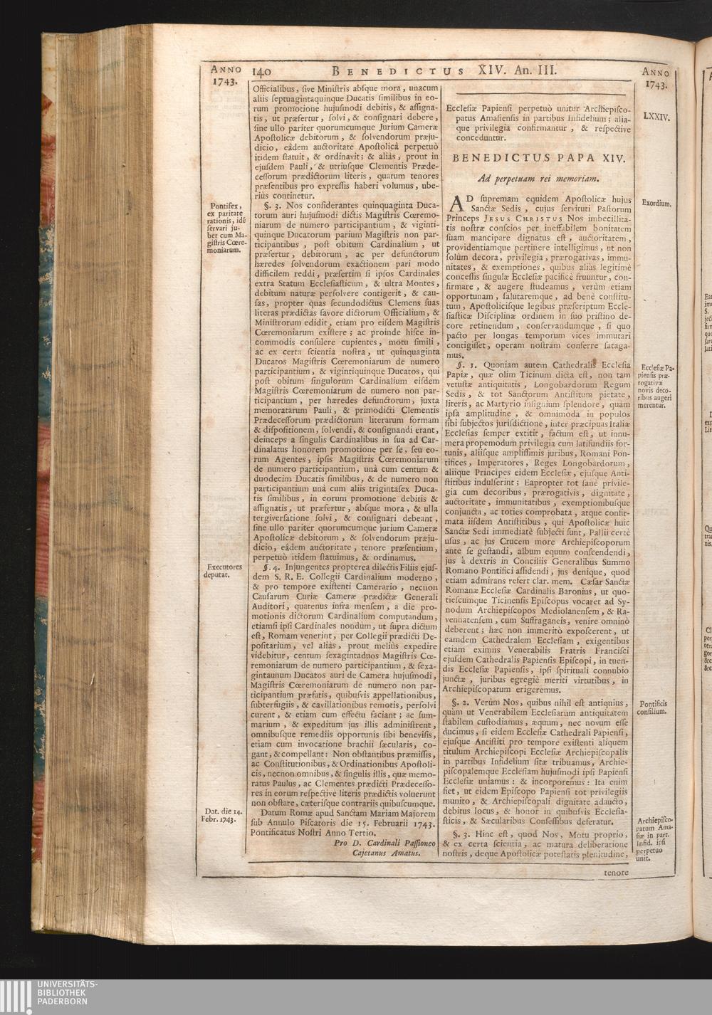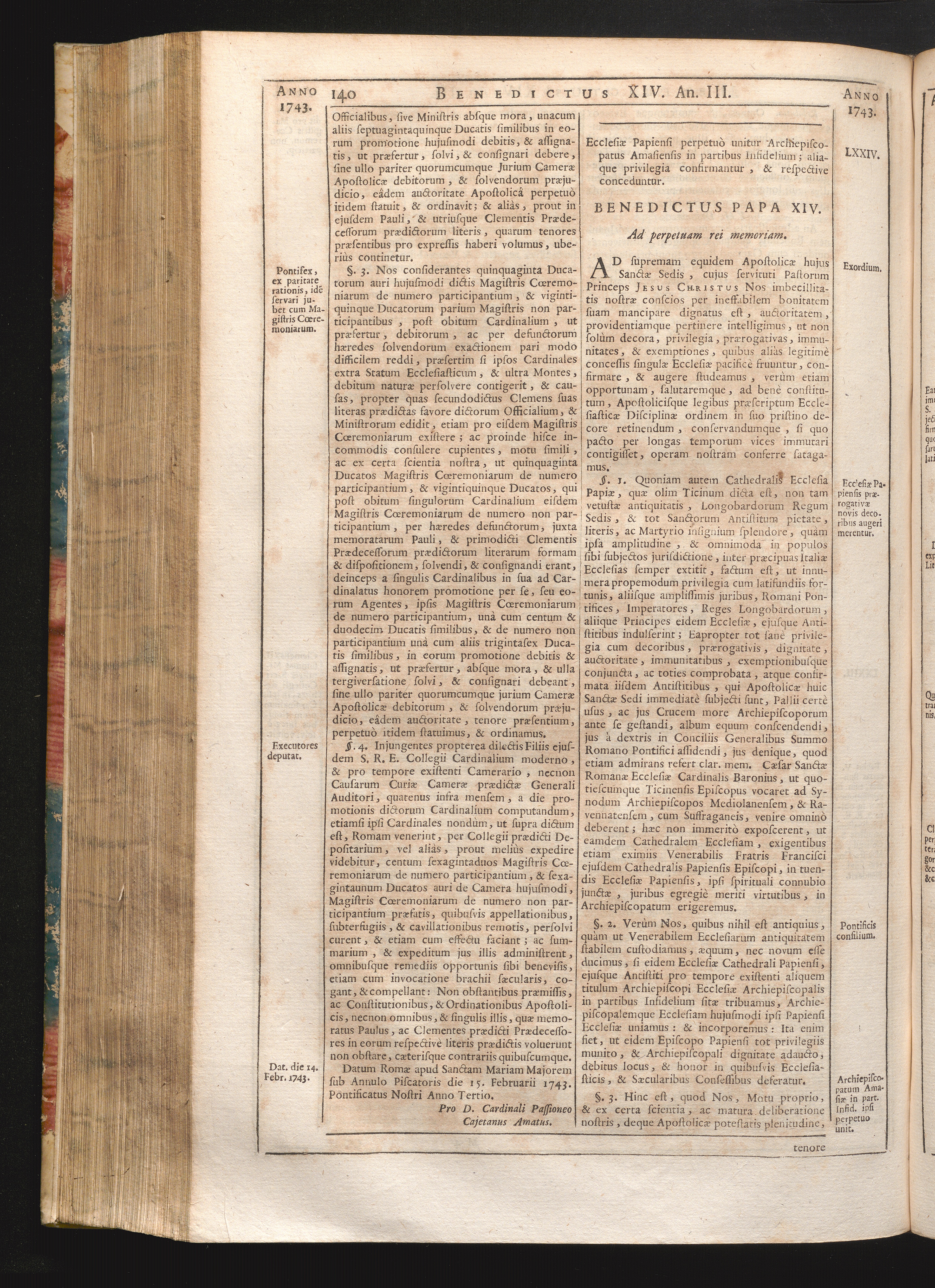LXXIV. Ecclesiæ Papiensi perpetuo unitur Archiepiscopatus Amasiensis in partibus[...]