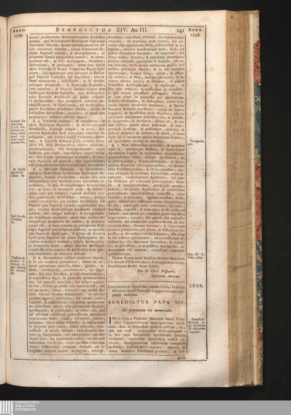 LXXV. Concionatoris Apostolici munus Ordini Fratrum Minorum Sancti Francisci Capuccinorum[...]