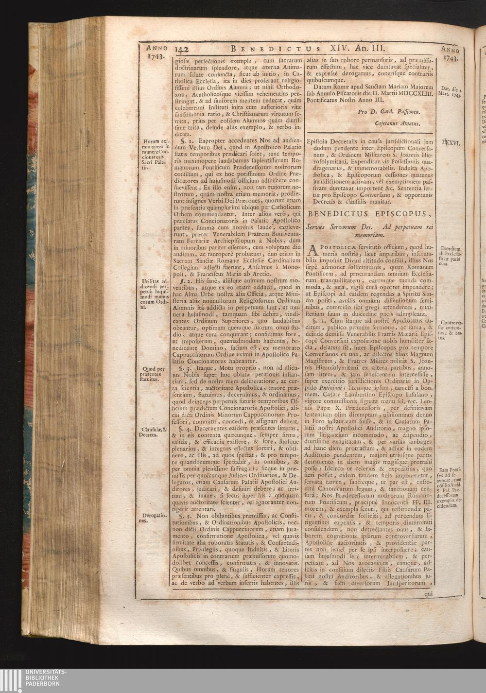 Tomus Decimus-Sextus = Continuationis Pars Decima (1752) Complectens Constitutiones Benedicti XIV. ab initio Pontificatus usque ad Annum 1746
