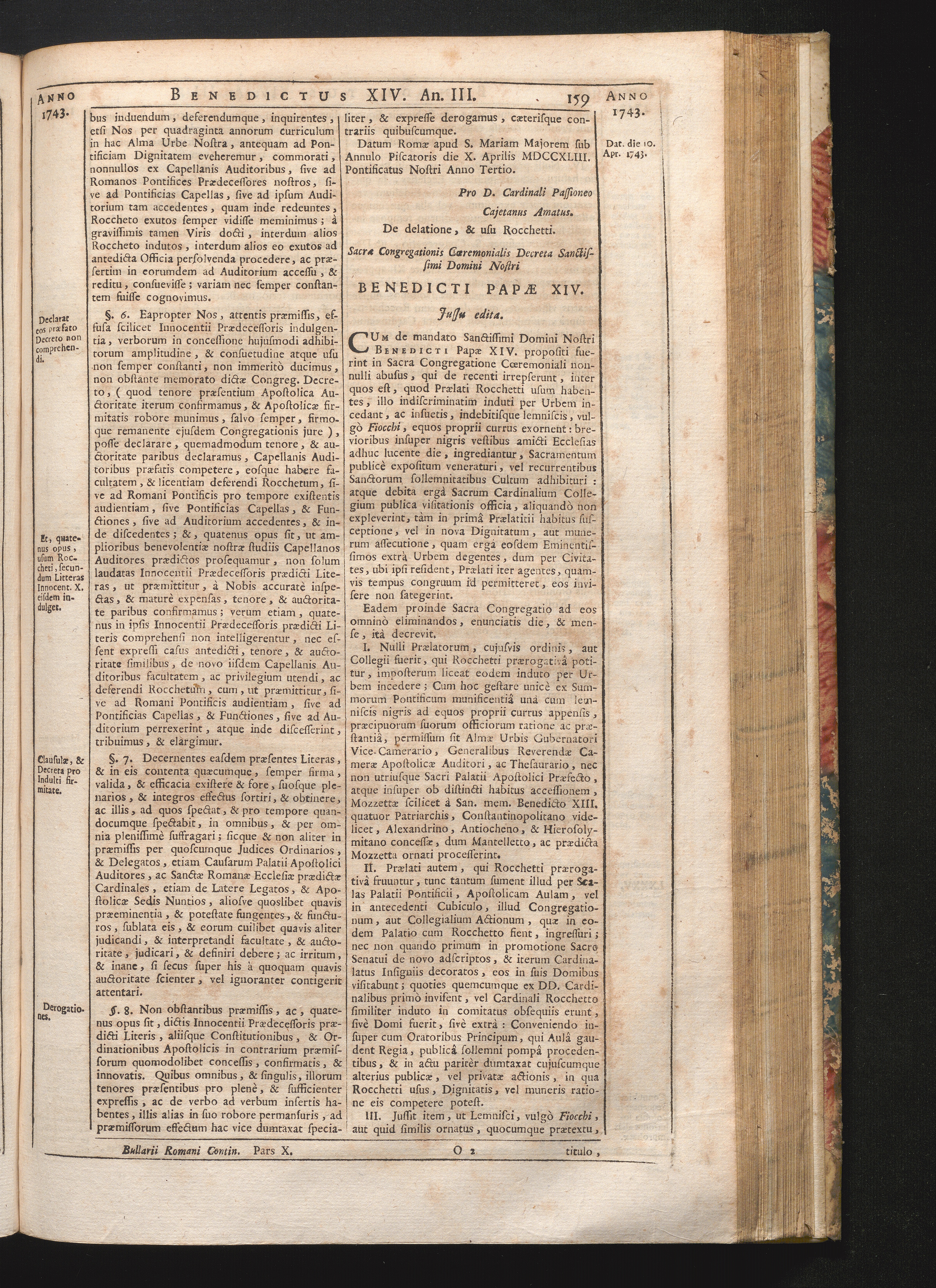 LXXXIV. Auditoribus Causarum Sac. Palatii Apostolici concidetur delatio Roccheti[...]