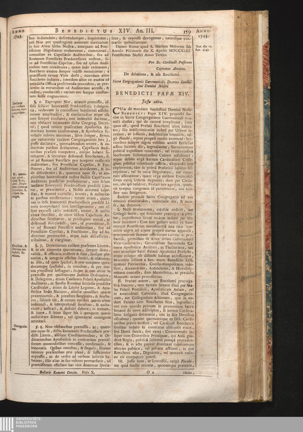 Tomus Decimus-Sextus = Continuationis Pars Decima (1752) Complectens Constitutiones Benedicti XIV. ab initio Pontificatus usque ad Annum 1746