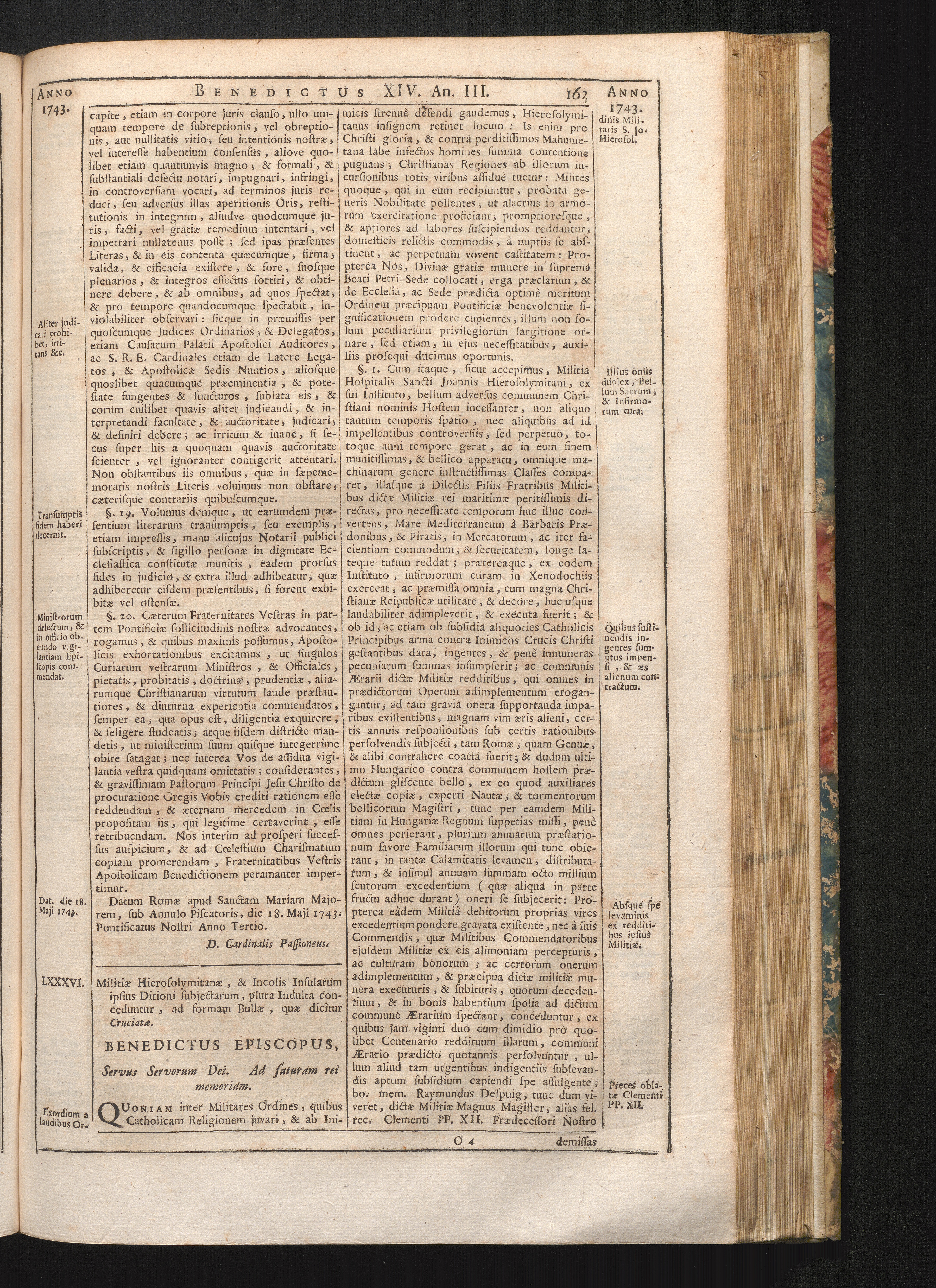 LXXVI. Militæ Hierosolymitanæ, & Incolis Insularum ipsius Ditioni subjectarum plura[...]