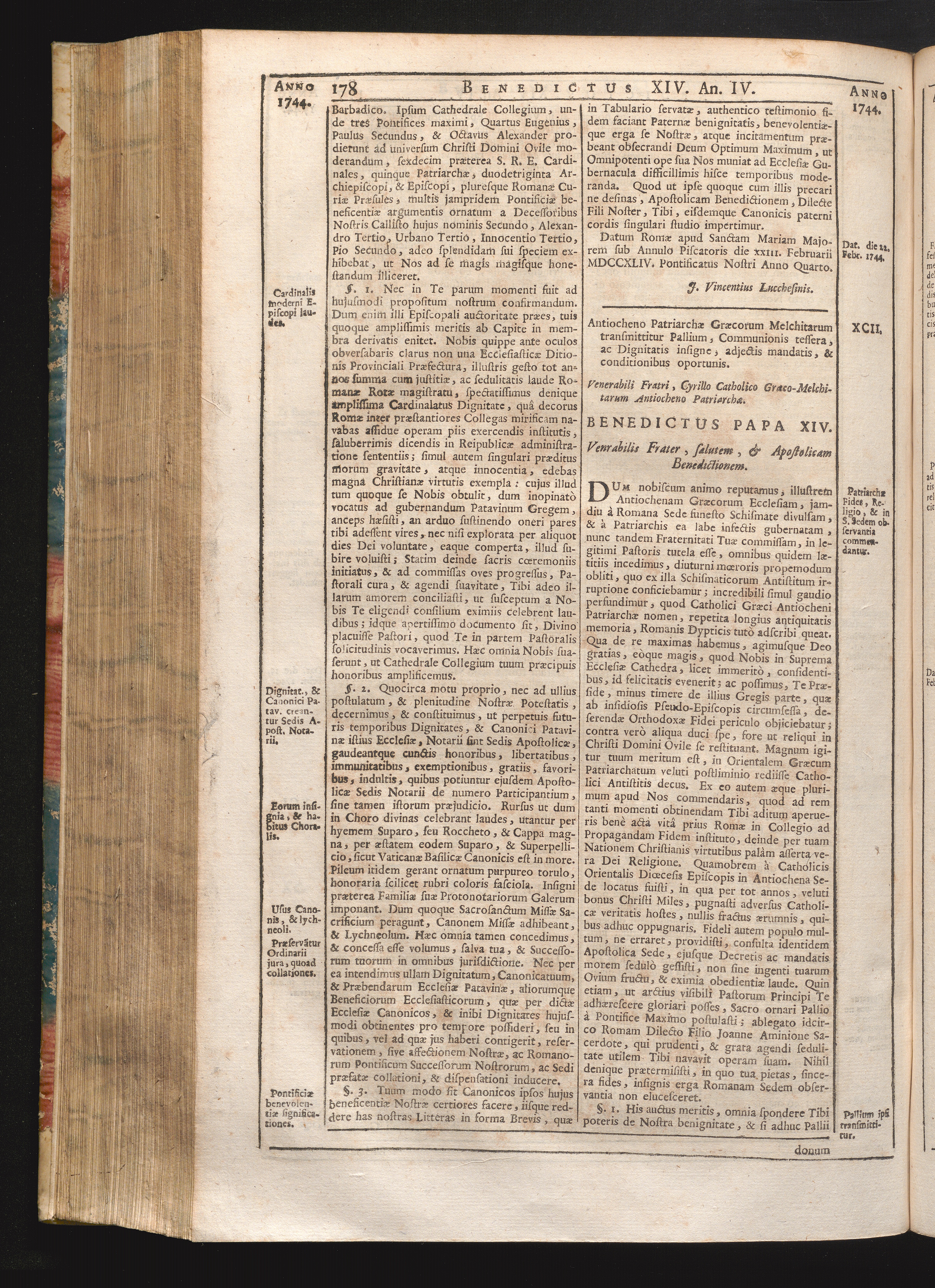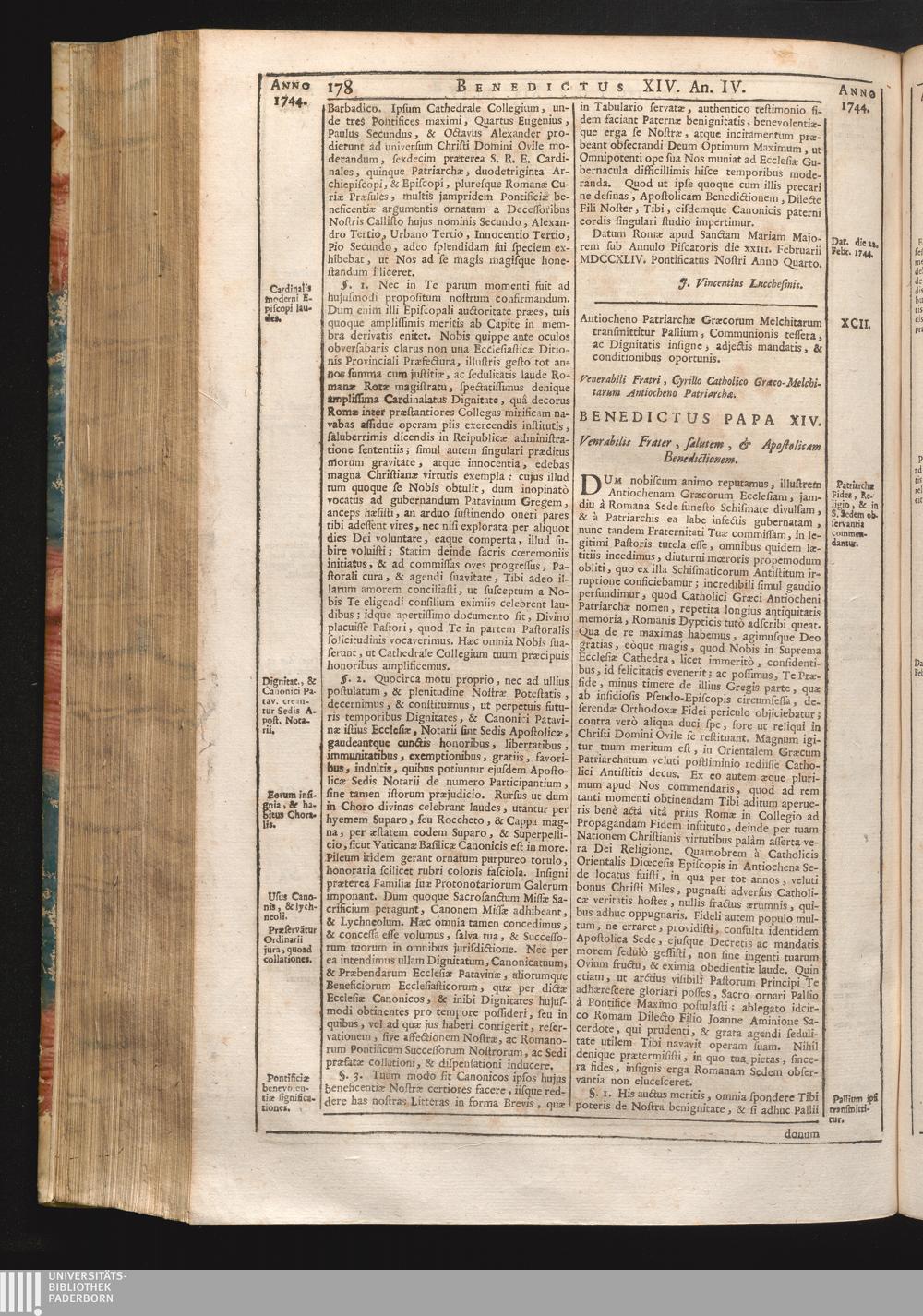 XCII. Antiocheno Patriarchæ Græcorum Melchitarum transmittitur Pallium, communionis[...]