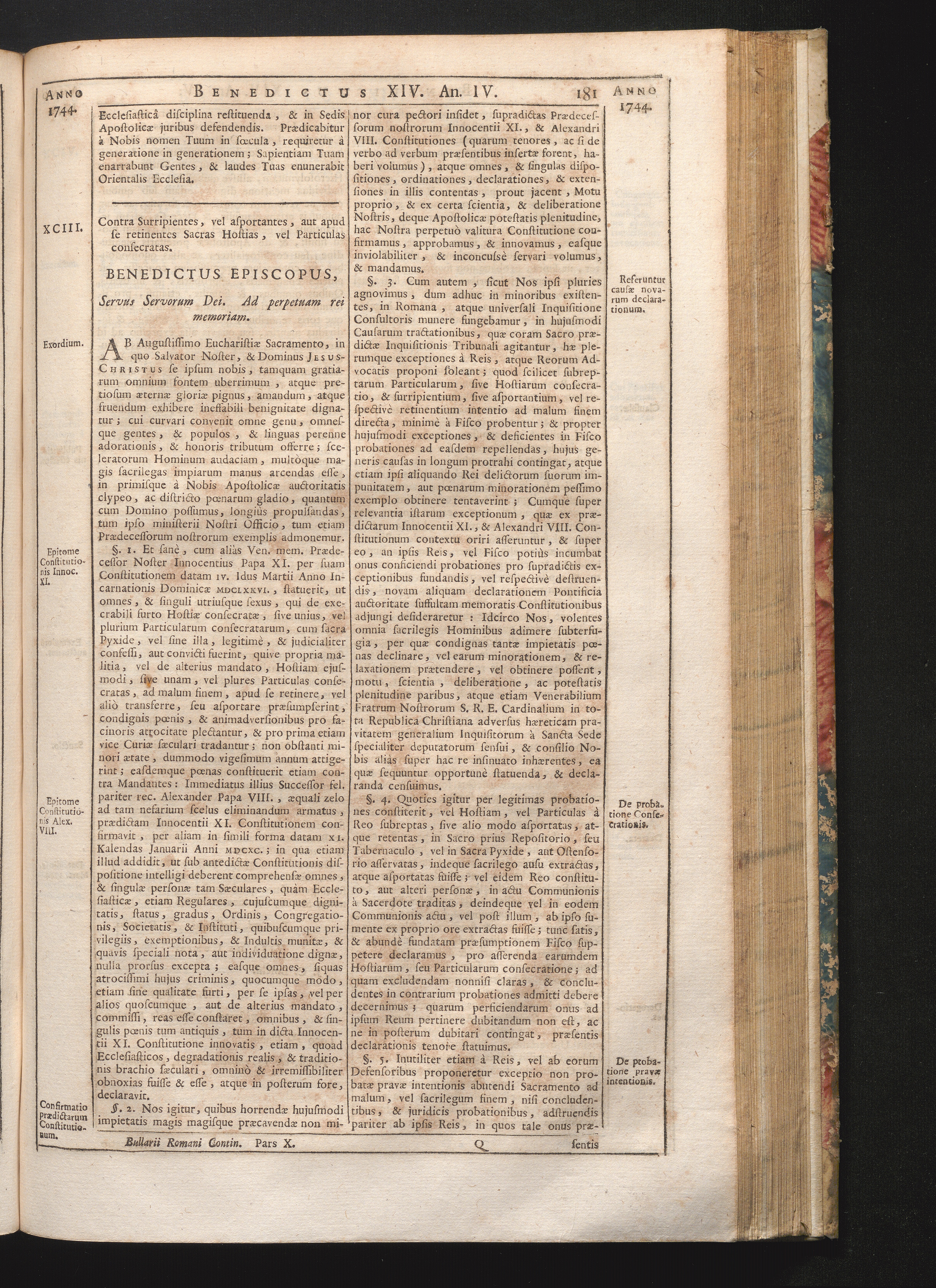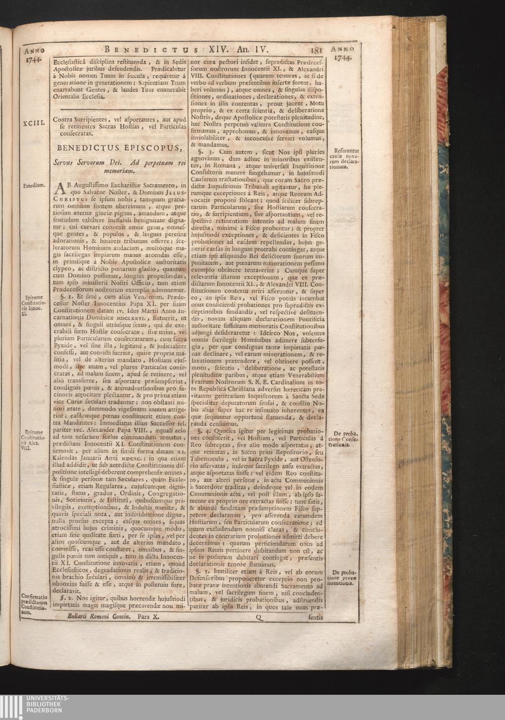 Tomus Decimus-Sextus = Continuationis Pars Decima (1752) Complectens Constitutiones Benedicti XIV. ab initio Pontificatus usque ad Annum 1746