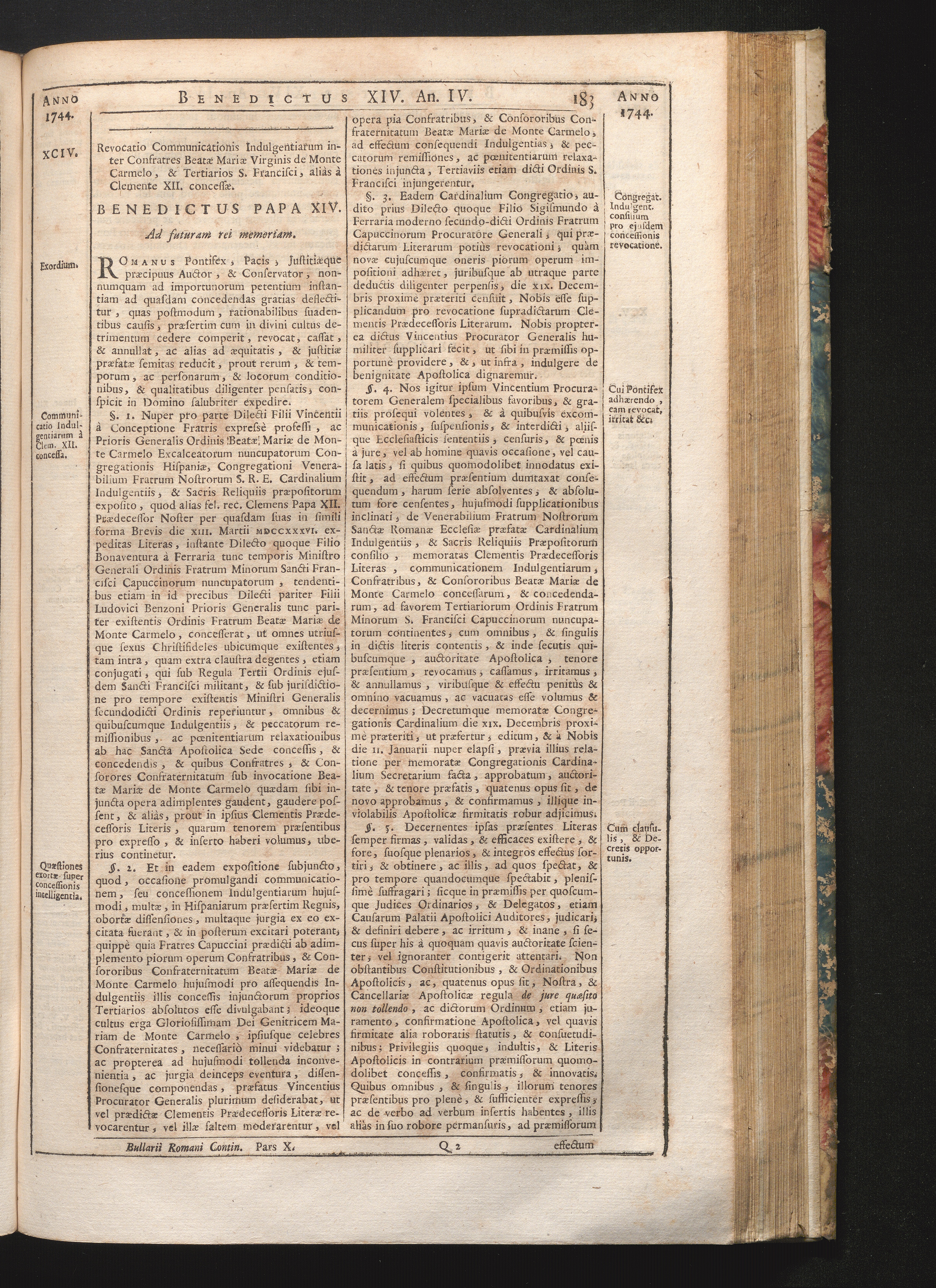 Tomus Decimus-Sextus = Continuationis Pars Decima (1752) Complectens Constitutiones Benedicti XIV. ab initio Pontificatus usque ad Annum 1746