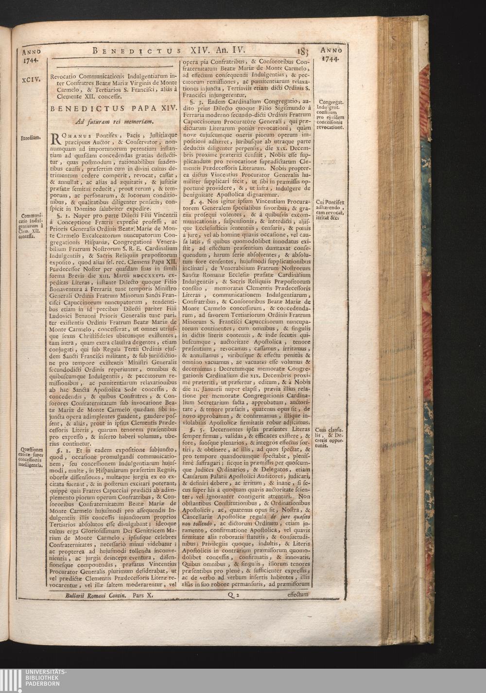 XCIV. Revocatio communicationis Indulgentiarum inter Confrares B. Mariæ Virginis[...]