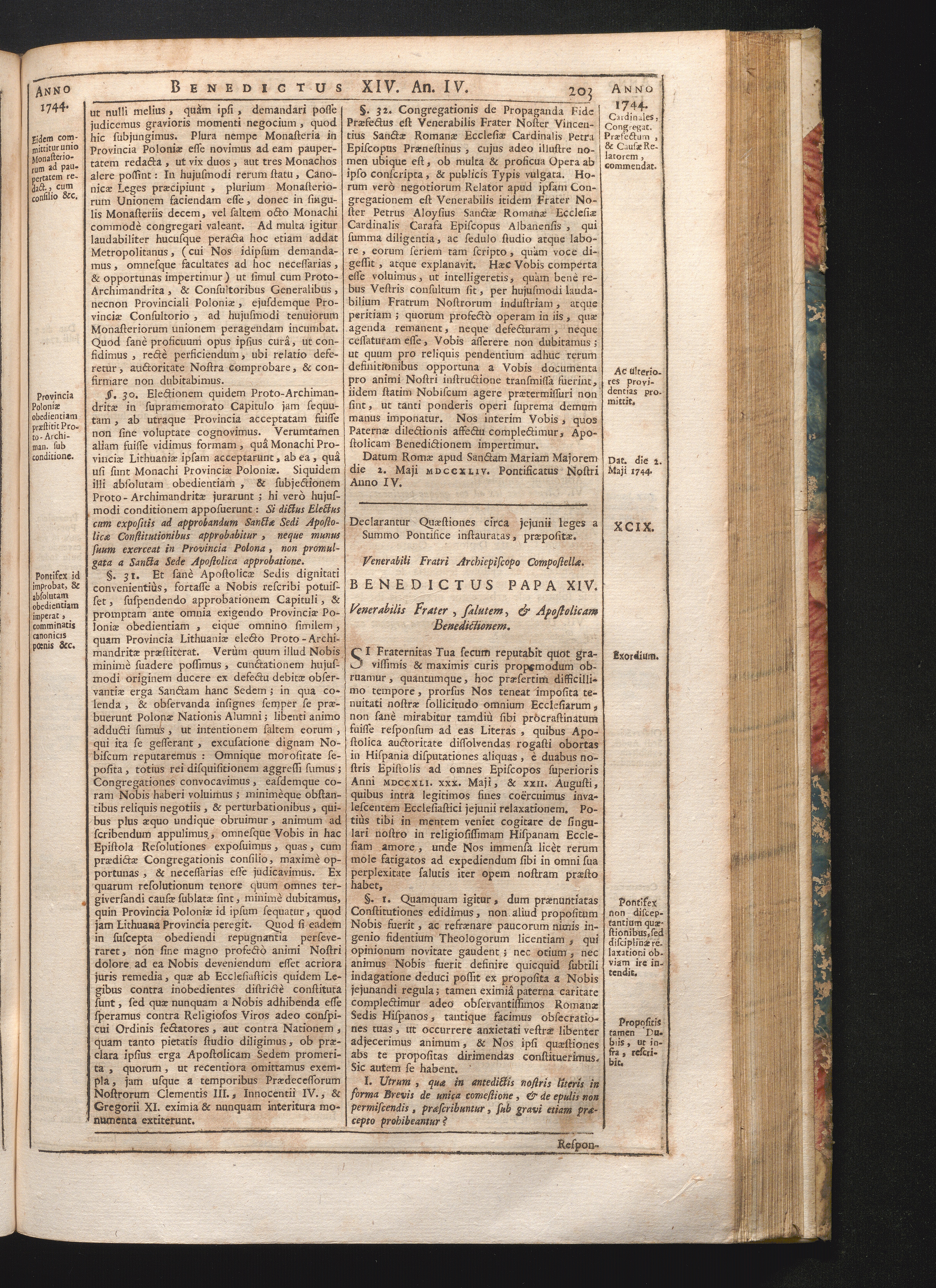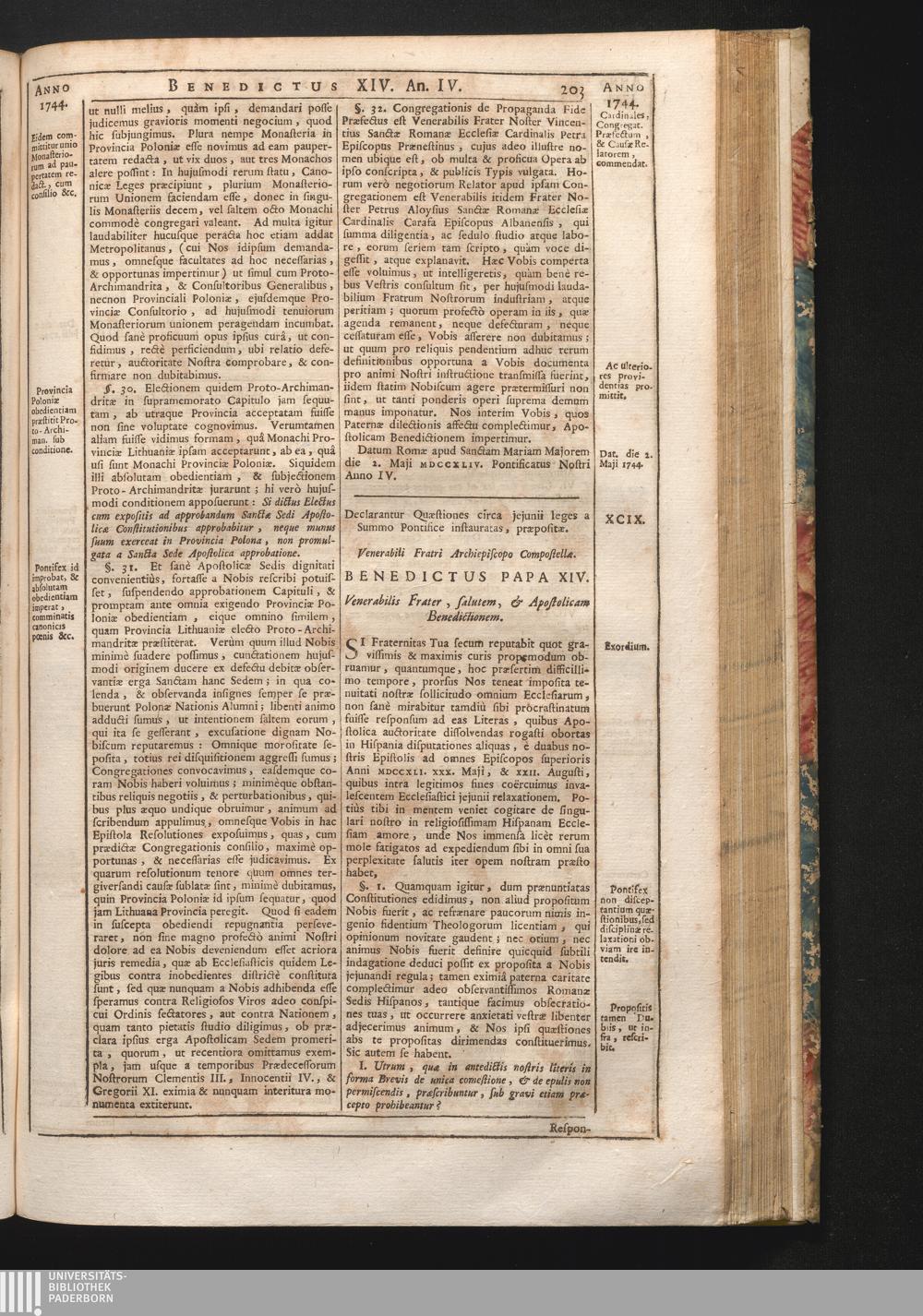 Tomus Decimus-Sextus = Continuationis Pars Decima (1752) Complectens Constitutiones Benedicti XIV. ab initio Pontificatus usque ad Annum 1746