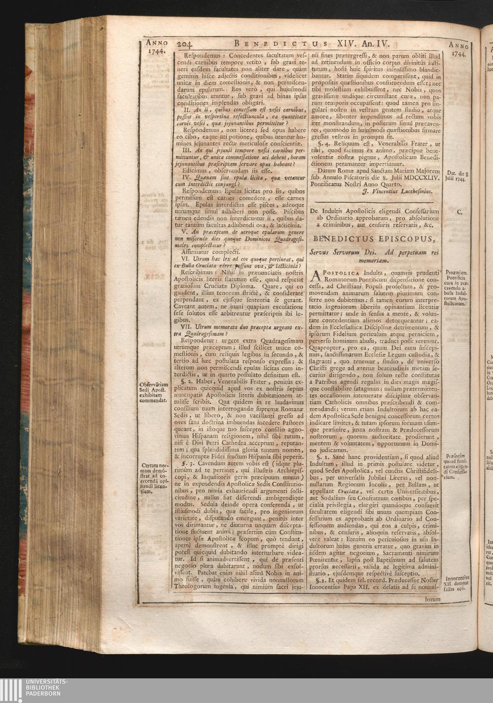 Tomus Decimus-Sextus = Continuationis Pars Decima (1752) Complectens Constitutiones Benedicti XIV. ab initio Pontificatus usque ad Annum 1746