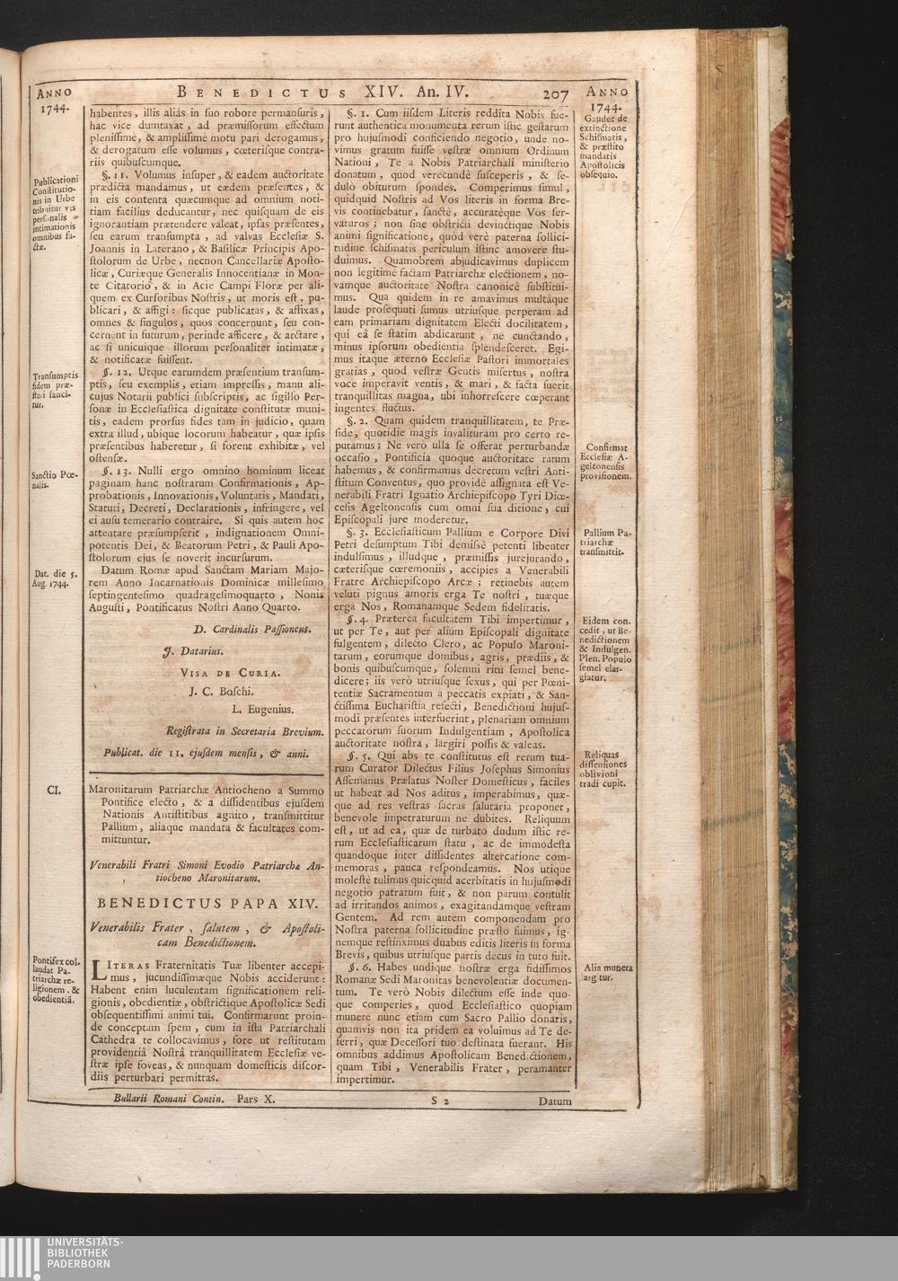 Tomus Decimus-Sextus = Continuationis Pars Decima (1752) Complectens Constitutiones Benedicti XIV. ab initio Pontificatus usque ad Annum 1746