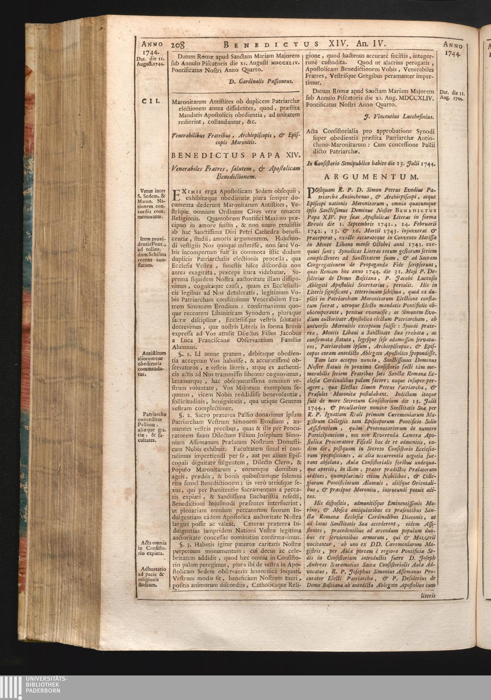 CII. Maronitarum Antistites ob duplicem Patriarchæ electionem antea dissidentes,[...]