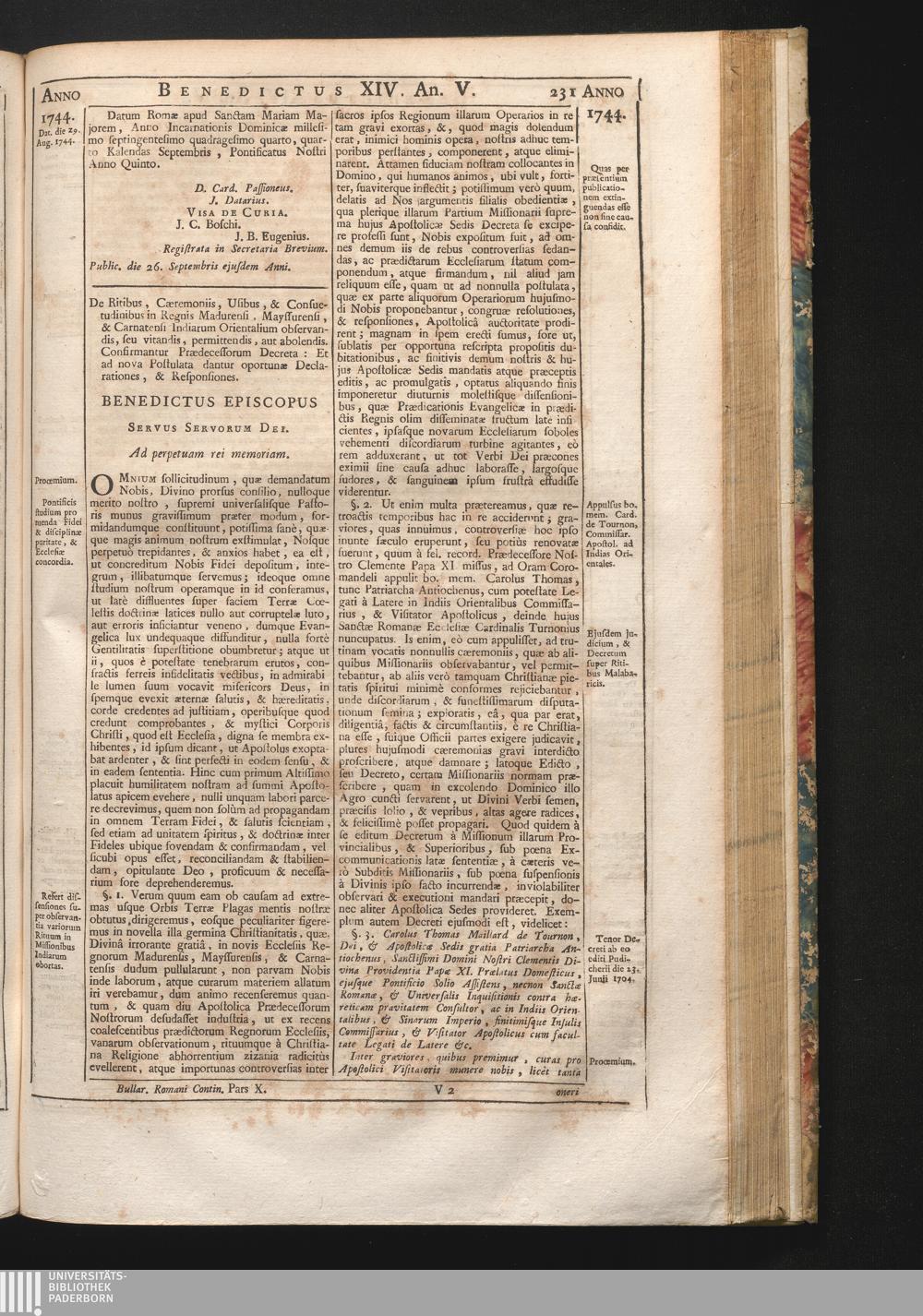 Tomus Decimus-Sextus = Continuationis Pars Decima (1752) Complectens Constitutiones Benedicti XIV. ab initio Pontificatus usque ad Annum 1746