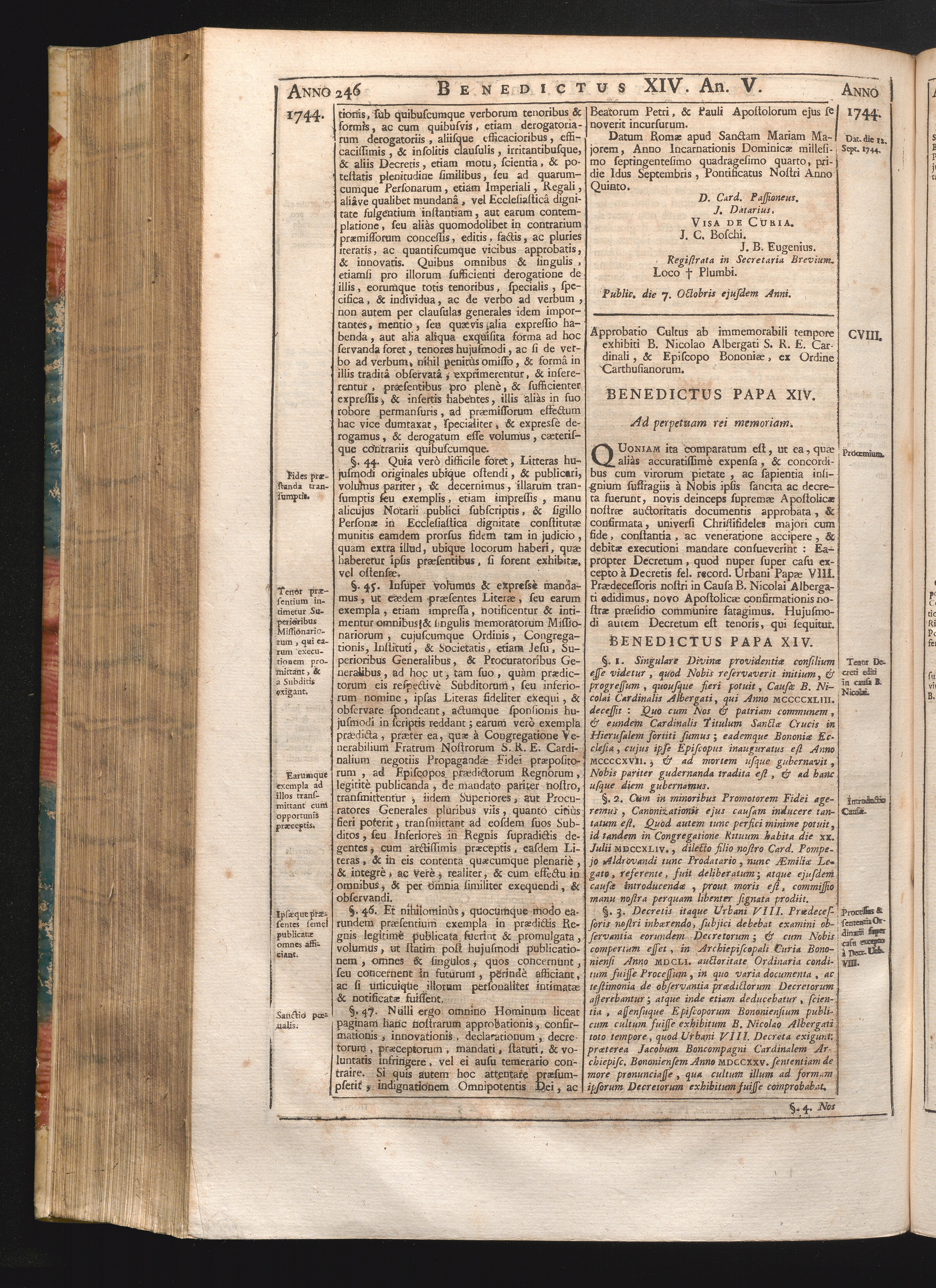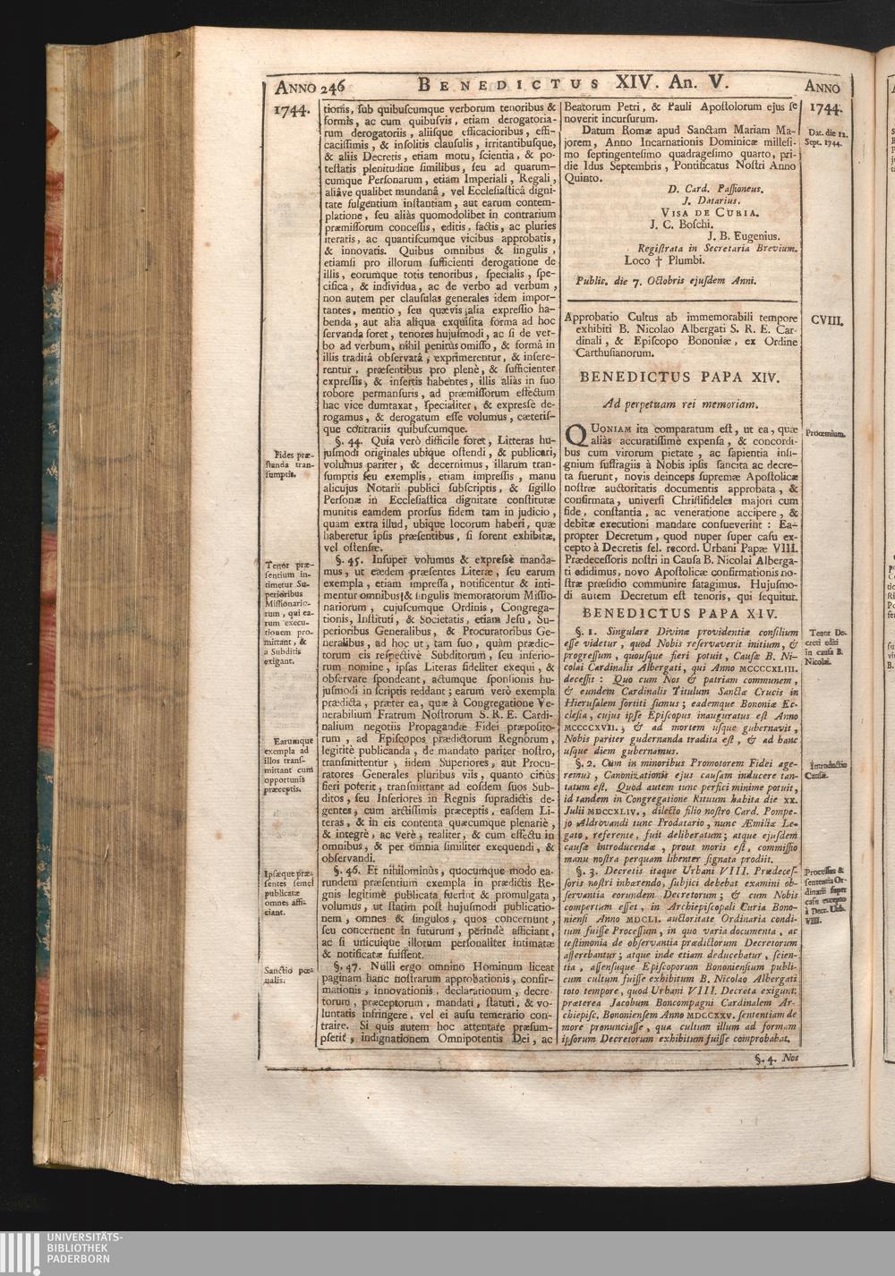 Tomus Decimus-Sextus = Continuationis Pars Decima (1752) Complectens Constitutiones Benedicti XIV. ab initio Pontificatus usque ad Annum 1746
