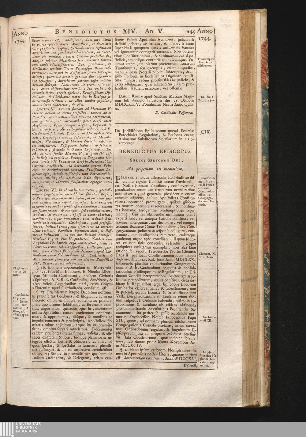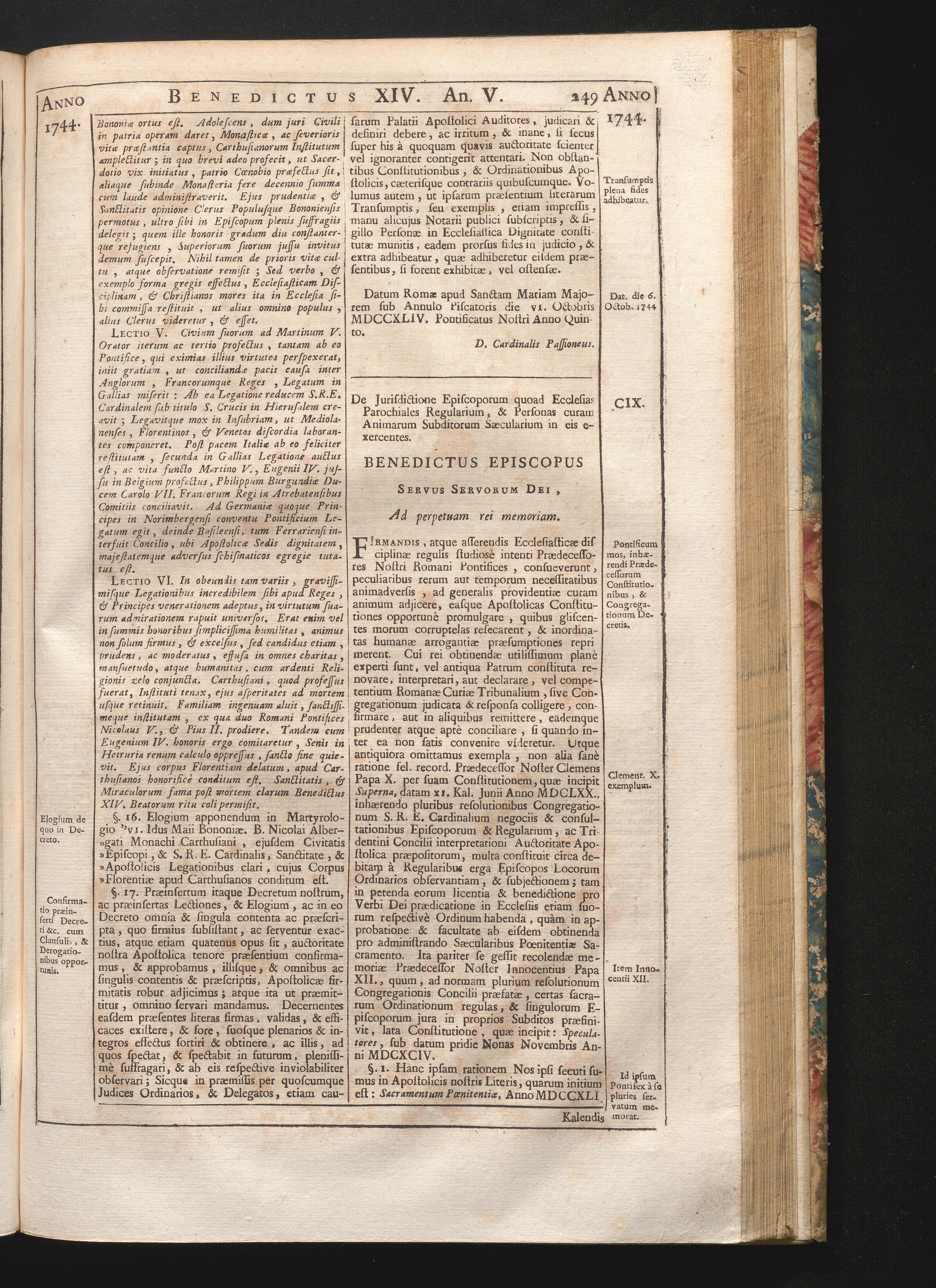 Tomus Decimus-Sextus = Continuationis Pars Decima (1752) Complectens Constitutiones Benedicti XIV. ab initio Pontificatus usque ad Annum 1746