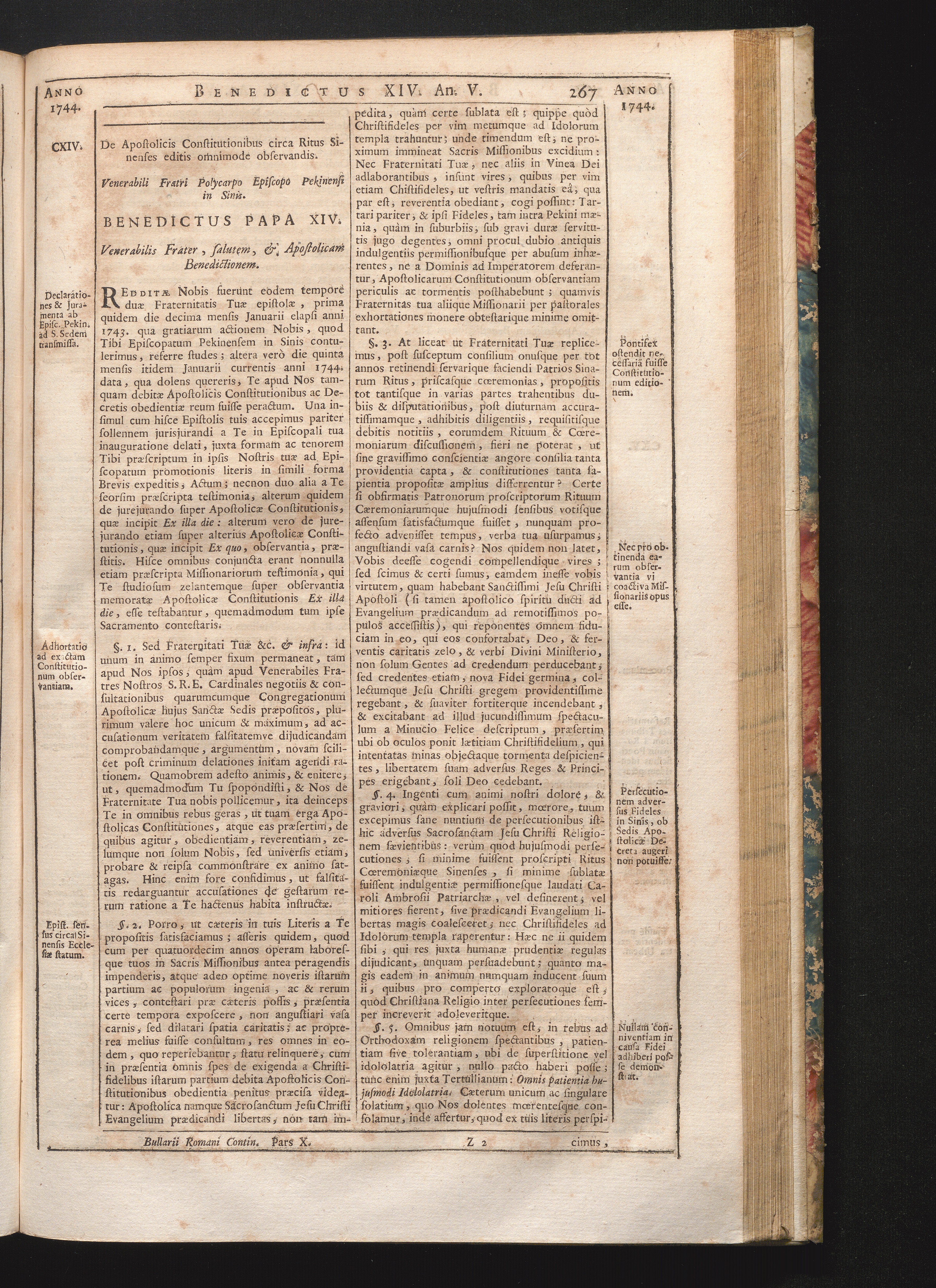 CXIV. De Apostolicis Constitutionibus circa Ritus Sinensis editis omnimode observandis.[...]
