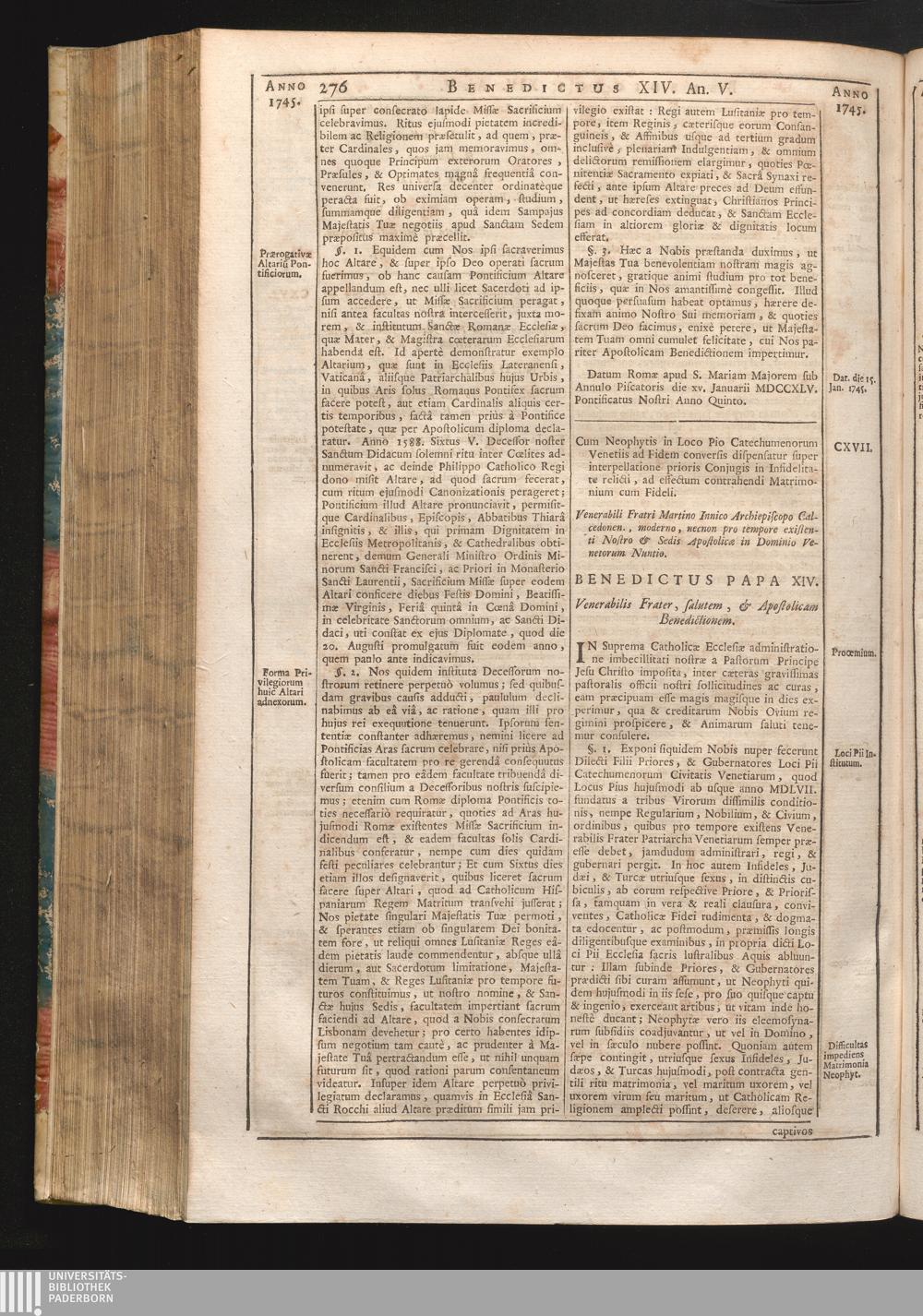 CXVII. Num Neophyis in loco Pio Catechumenorum Venetiis ad Fidem conversis dispensatur[...]