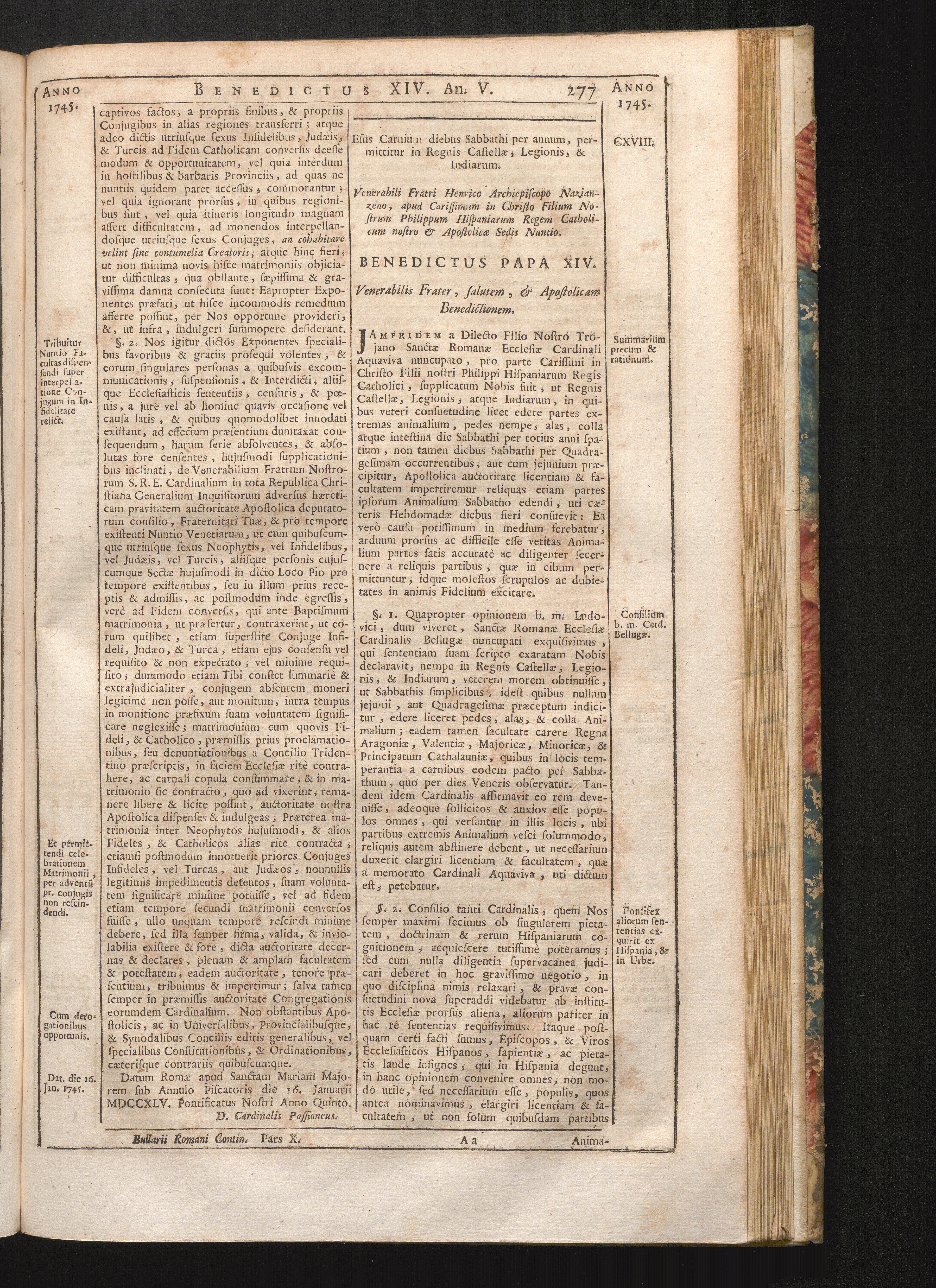 Tomus Decimus-Sextus = Continuationis Pars Decima (1752) Complectens Constitutiones Benedicti XIV. ab initio Pontificatus usque ad Annum 1746