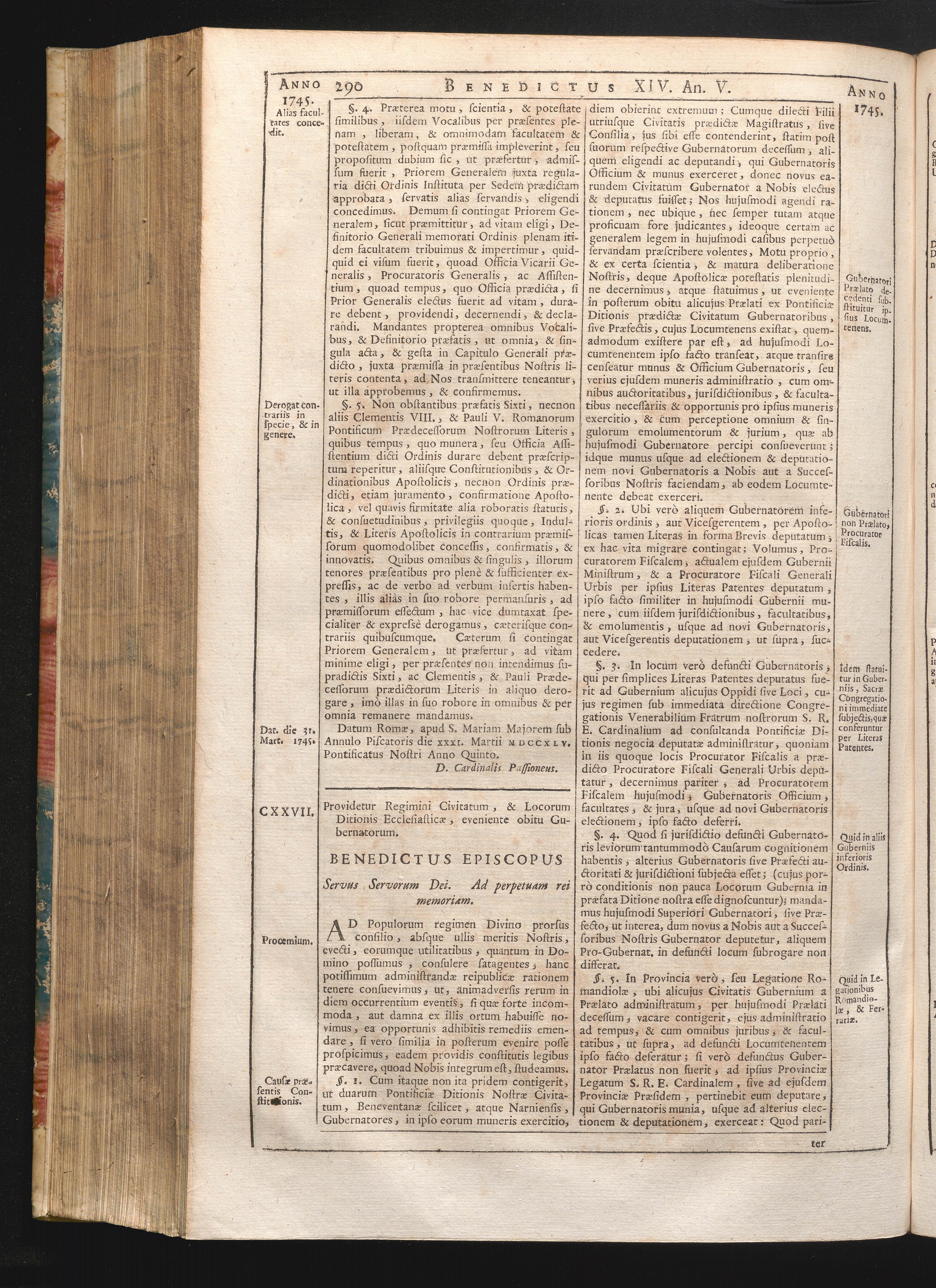 CXXVII. Providetur Regimini Civitatum, & Locorum Ditionis Ecclesiasticæ, eveniente[...]