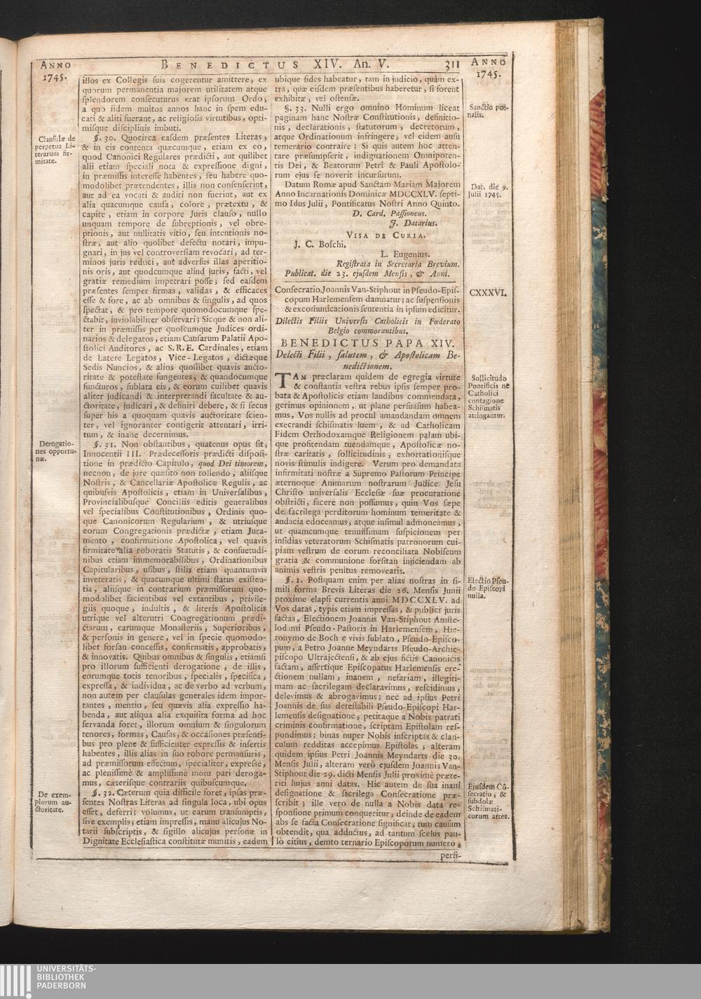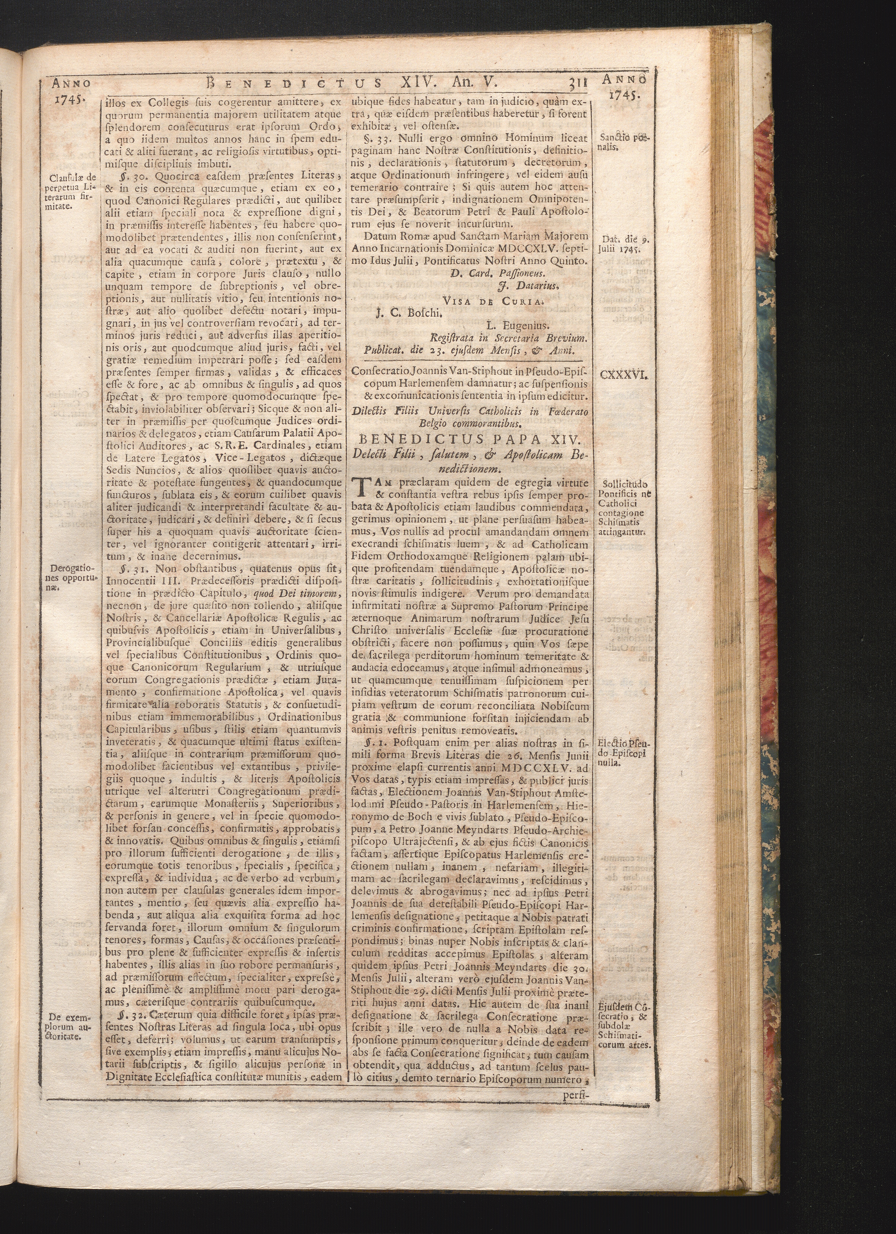 CXXXVI. Consecratio Joannis Van-Stiphout in Preudo-Episcopum Harlemensem damnatur;[...]