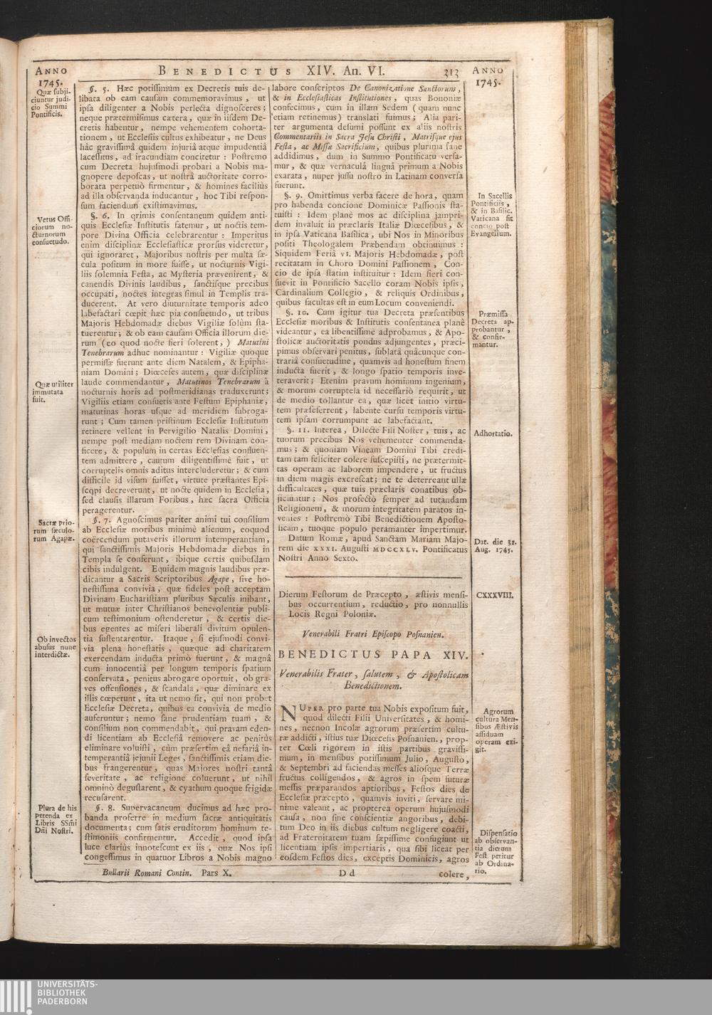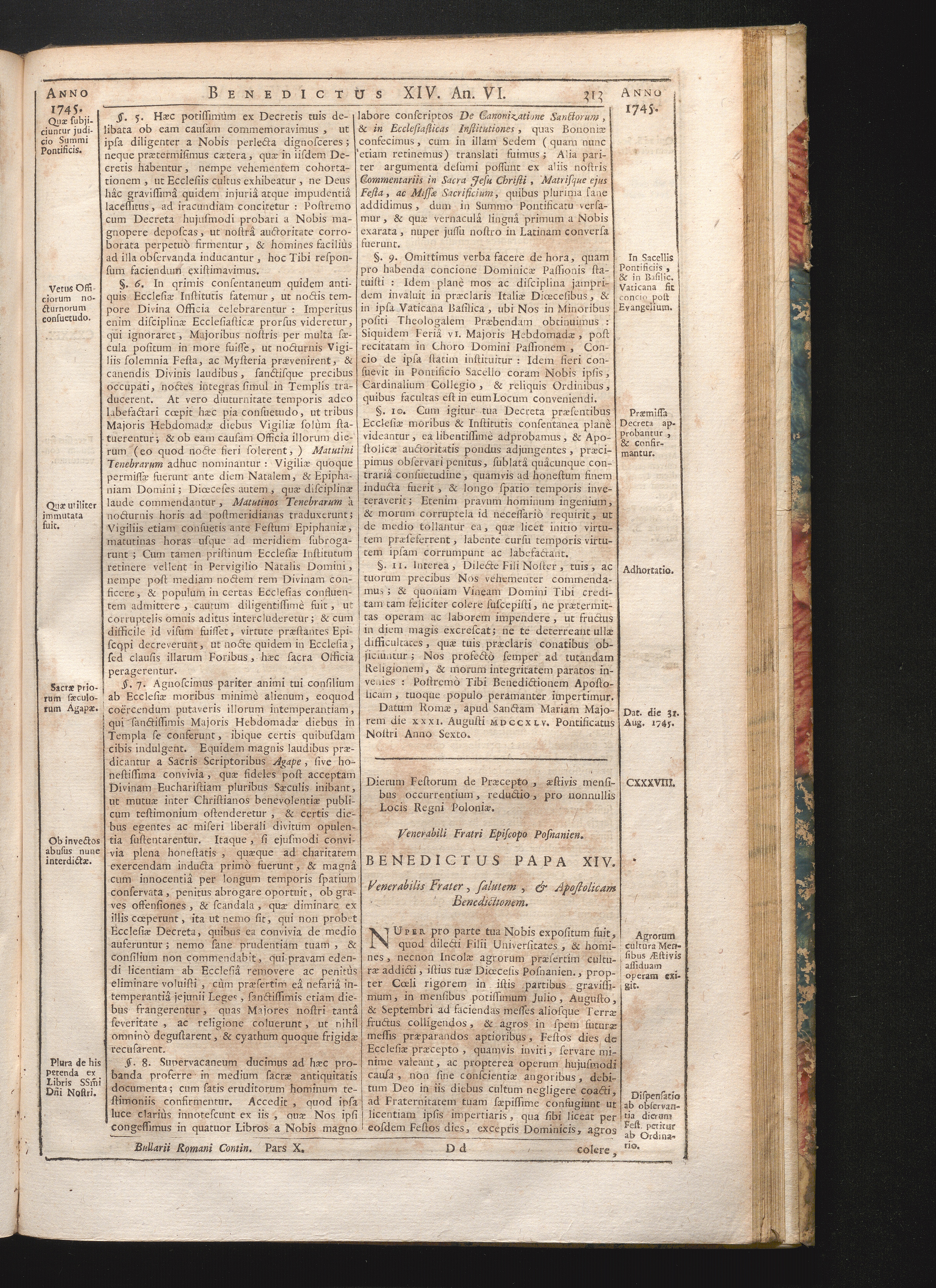 Tomus Decimus-Sextus = Continuationis Pars Decima (1752) Complectens Constitutiones Benedicti XIV. ab initio Pontificatus usque ad Annum 1746